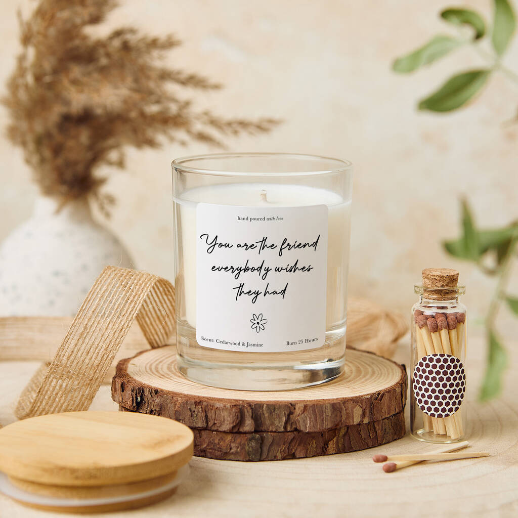 Show your best friend just how special they are with this heartfelt You Are the Friend Everybody Wishes They Had candle. Hand-poured with love, this elegant soy wax candle makes a meaningful gift for birthdays, Christmas, or simply to remind your friend how much they mean to you. A warm and comforting gesture that celebrates true friendship.