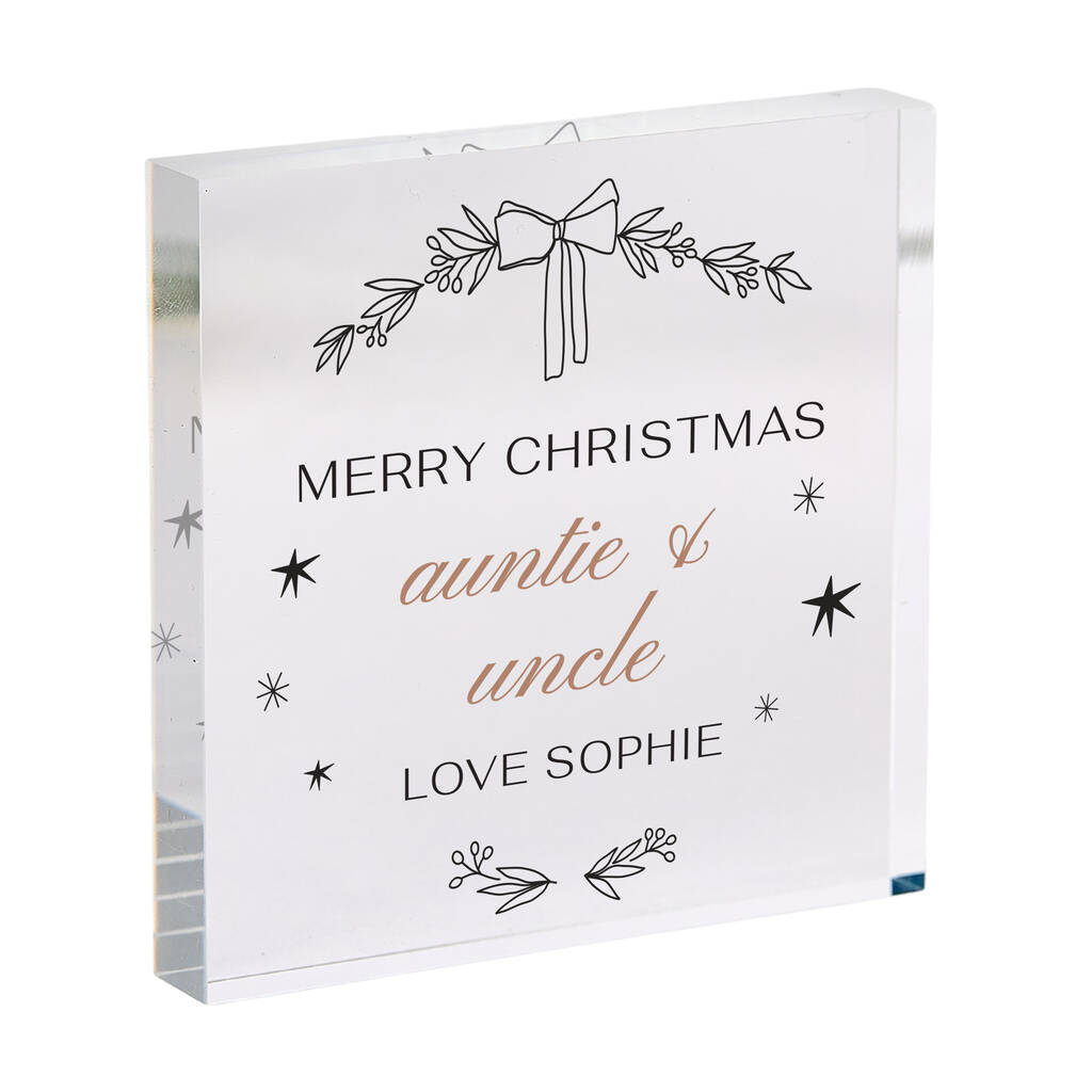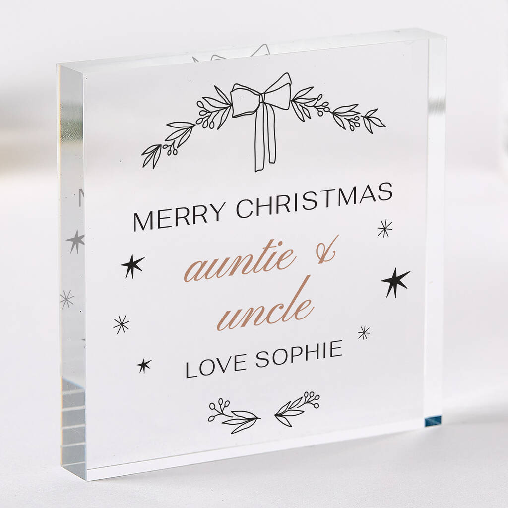 Personalised Merry Christmas Acrylic Plaque Gift For Auntie And Uncle