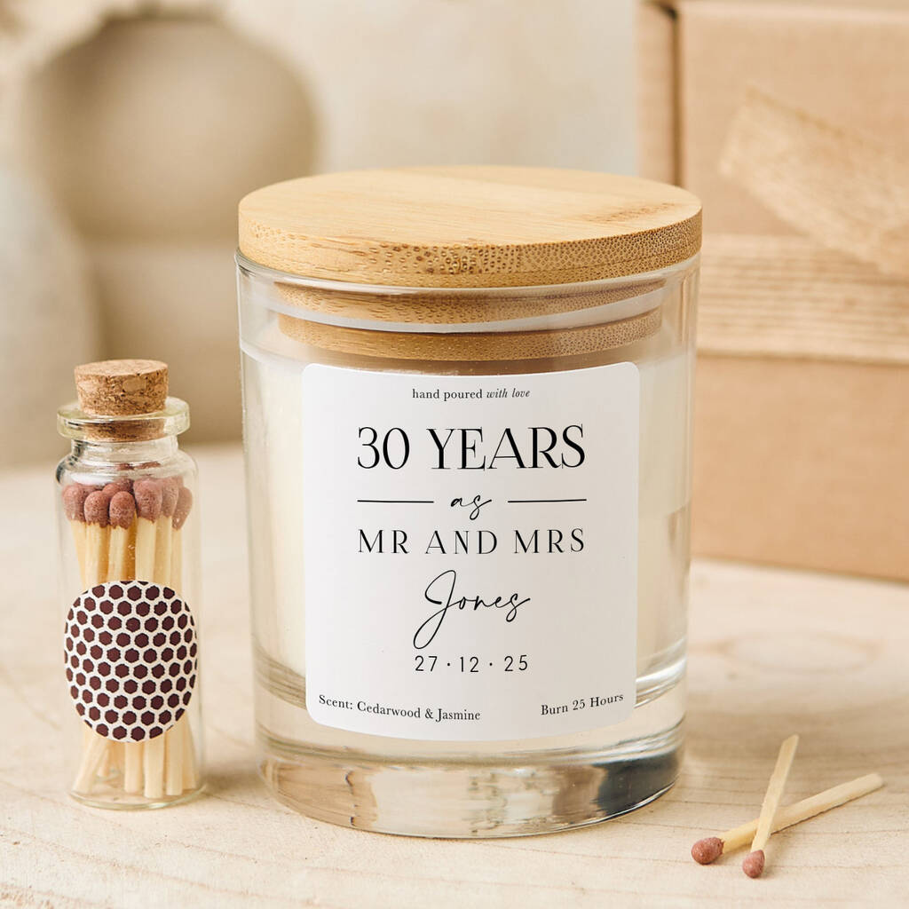 Personalised Wedding Anniversary Candle Gift – Elegant Keepsake for Couple Friend Wife