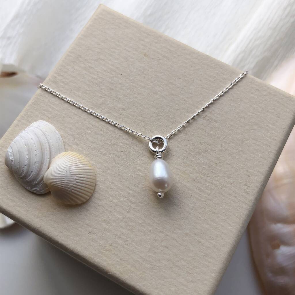 Recycled Sterling Silver And Freshwater Pearl Drop Necklace, 1 of 9
