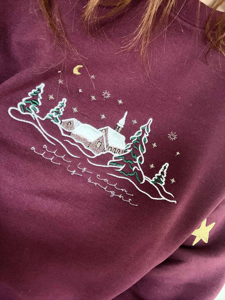 Snowy Stars Church Village Embroidered Christmas Jumper