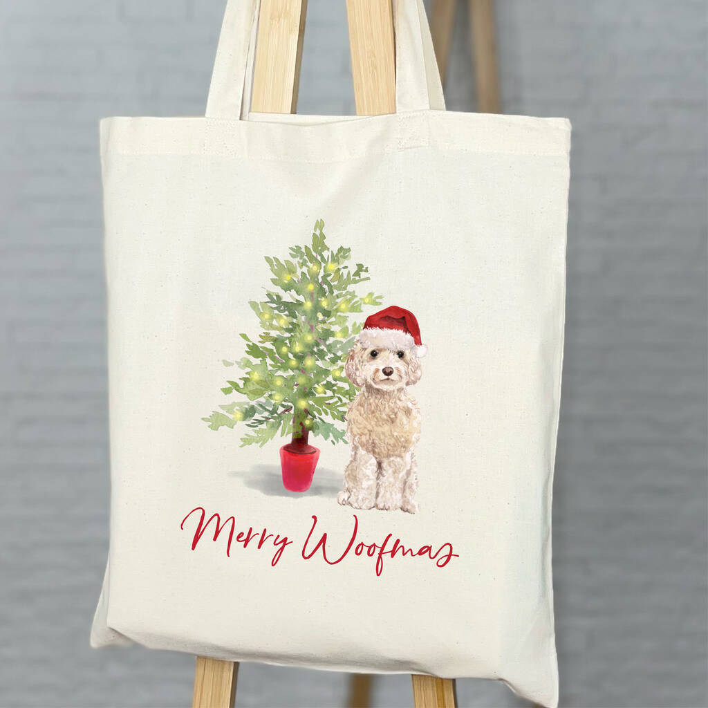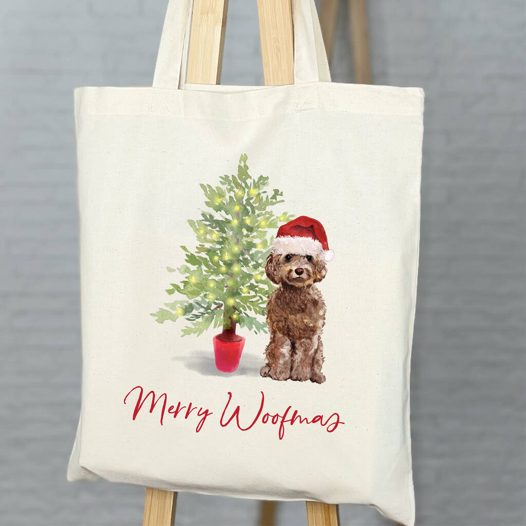 Merry Woofmas! Our Cockapoo Christmas Tote Bag is the perfect Christmas accessory or christmas gift for someone who is the proud owner of a Cockapoo.