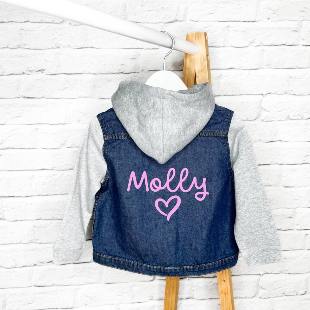 Personalised Pink Heart Baby/Kids Denim Jacket