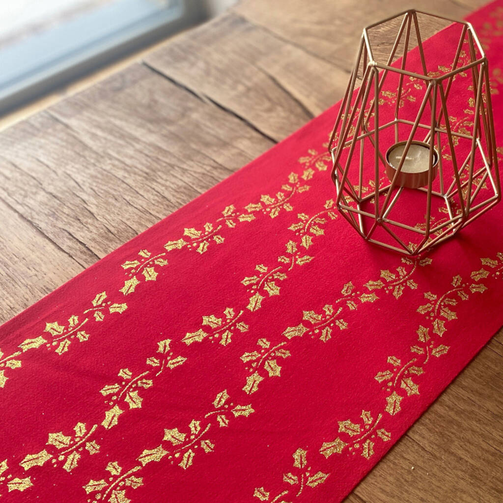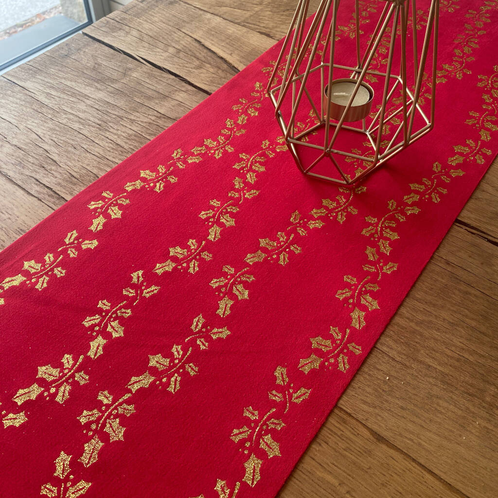 Christmas Holly Table Runner Red Gold Velvet Festive Decoration 3m