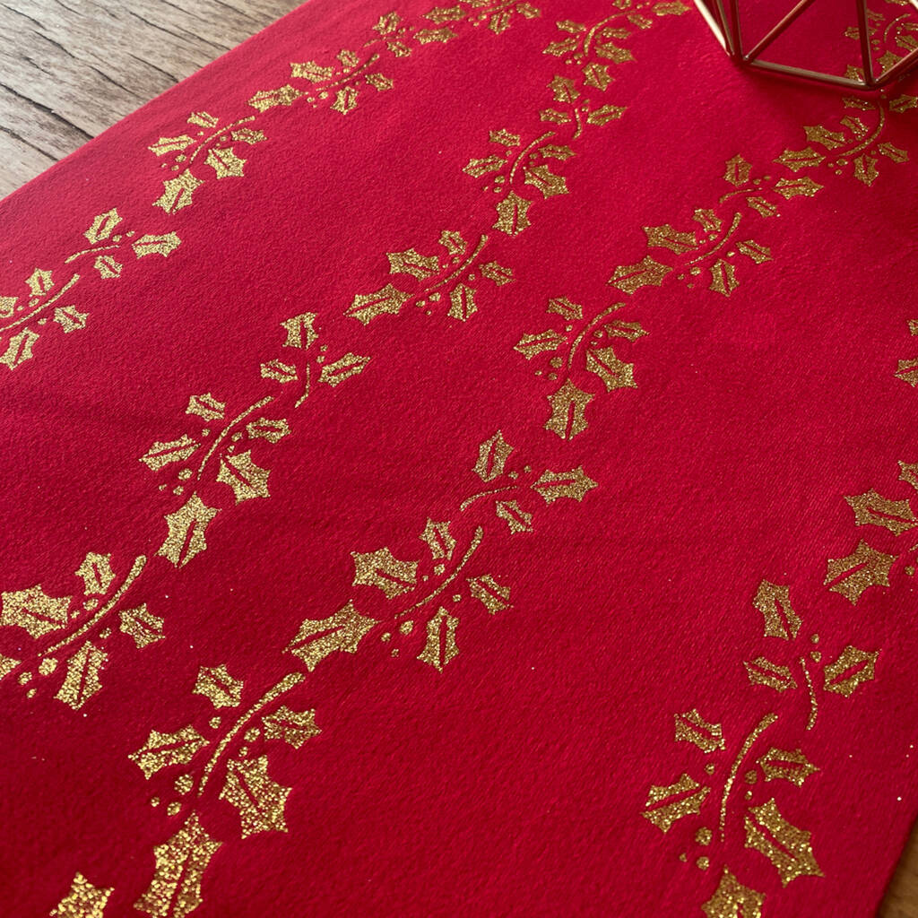 Christmas Holly Table Runner Red Gold Velvet Festive Decoration 3m, 1 of 4