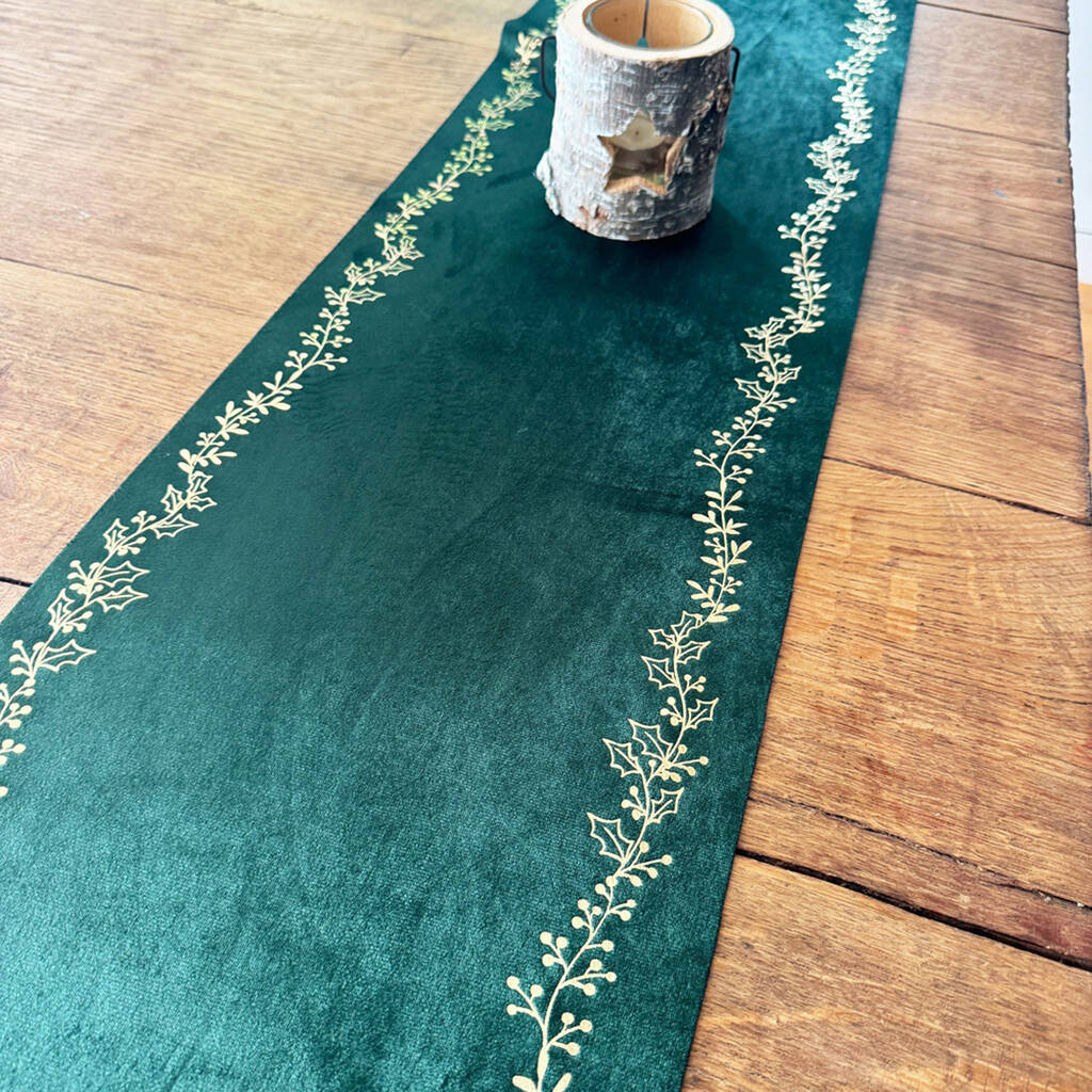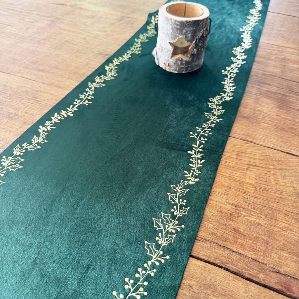 Introduce a touch of elegance to your holiday celebrations with our stunning Gold and Green Christmas Table Runner, perfect for creating a festive dining atmosphere.