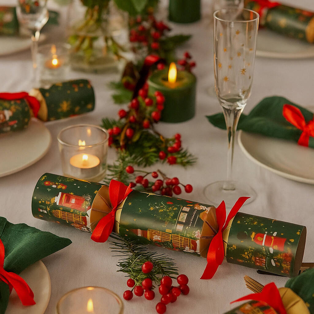 London Landmarks Christmas Crackers Table Decoration Set Of Six Green And Red