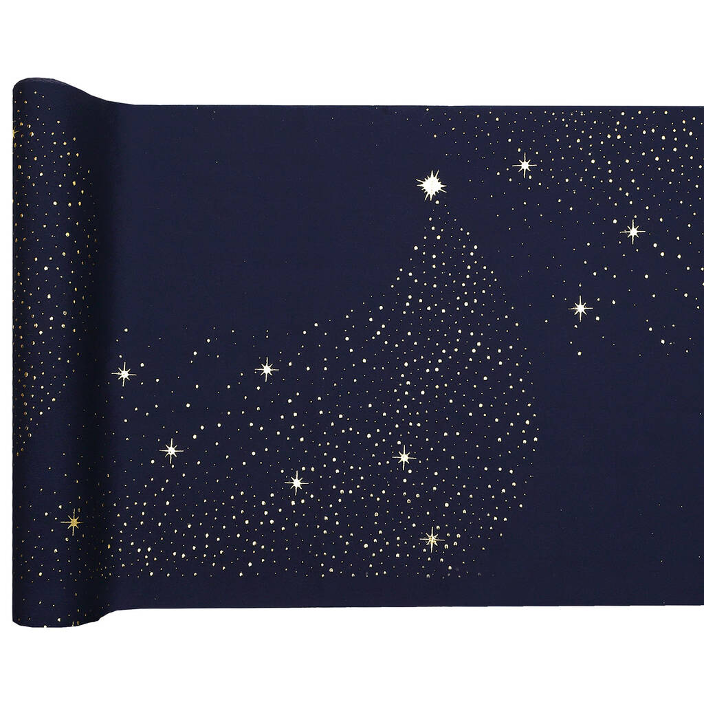 TABLE RUNNER in a rich navy blue hue, accented with shimmering glitter, adds a touch of elegance and festive spirit to your dining setting.