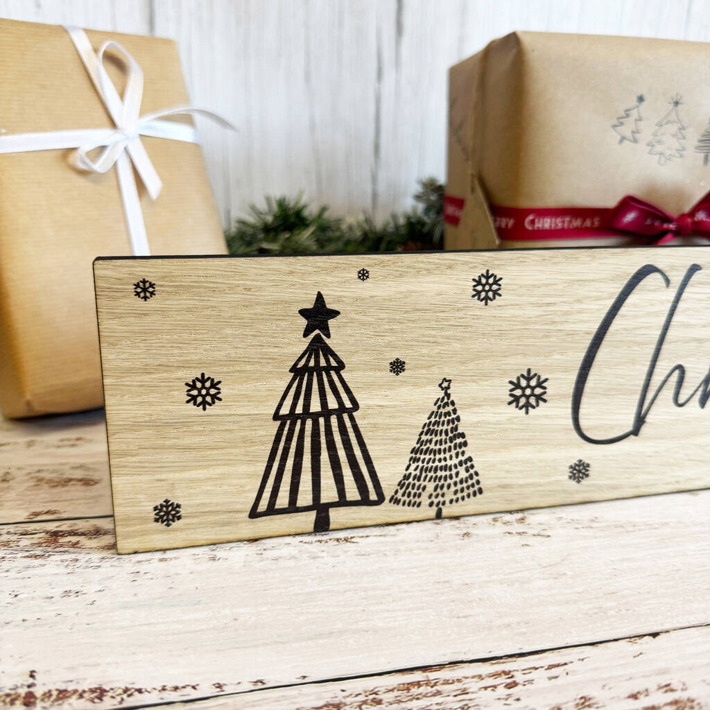 Personalised Oak Christmas Sign Family Keepsake Decor, 1 of 4