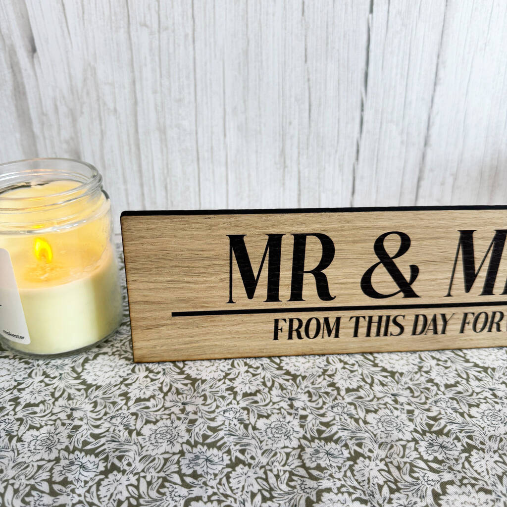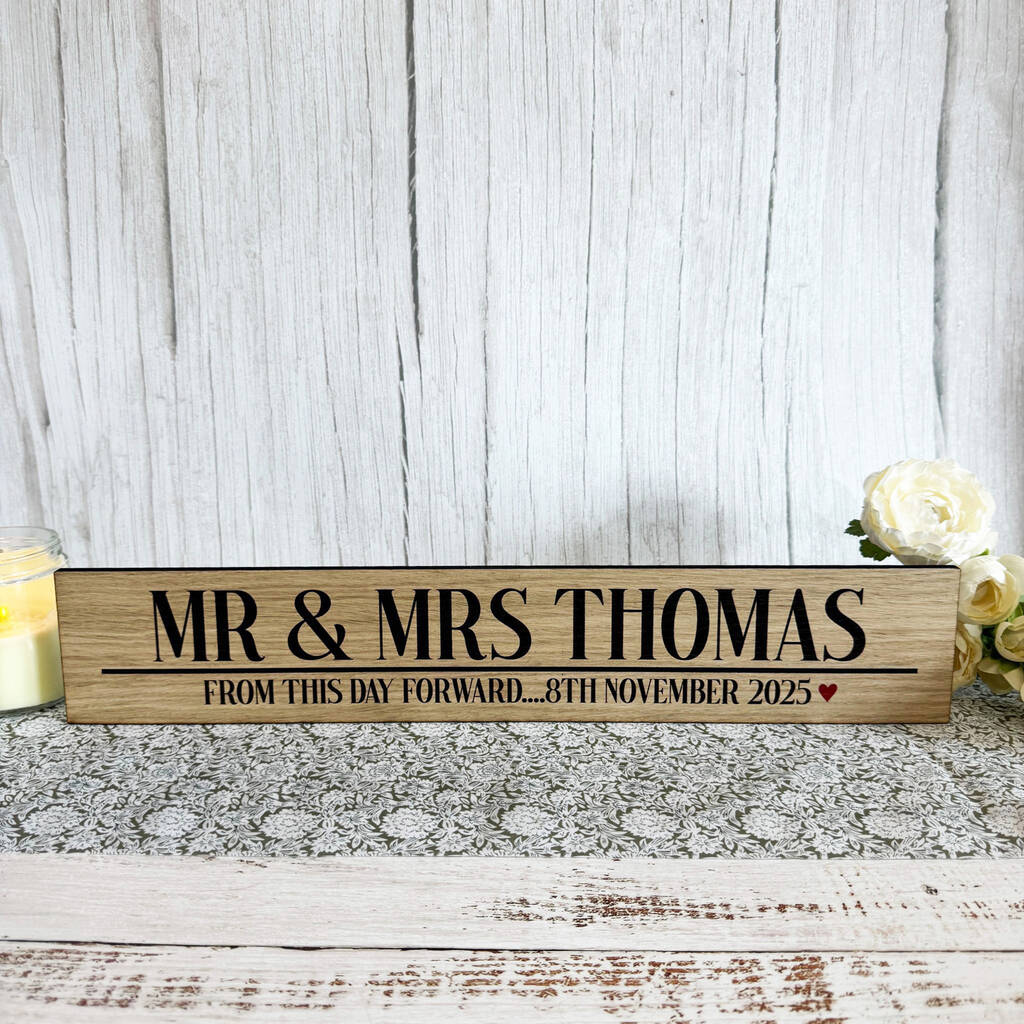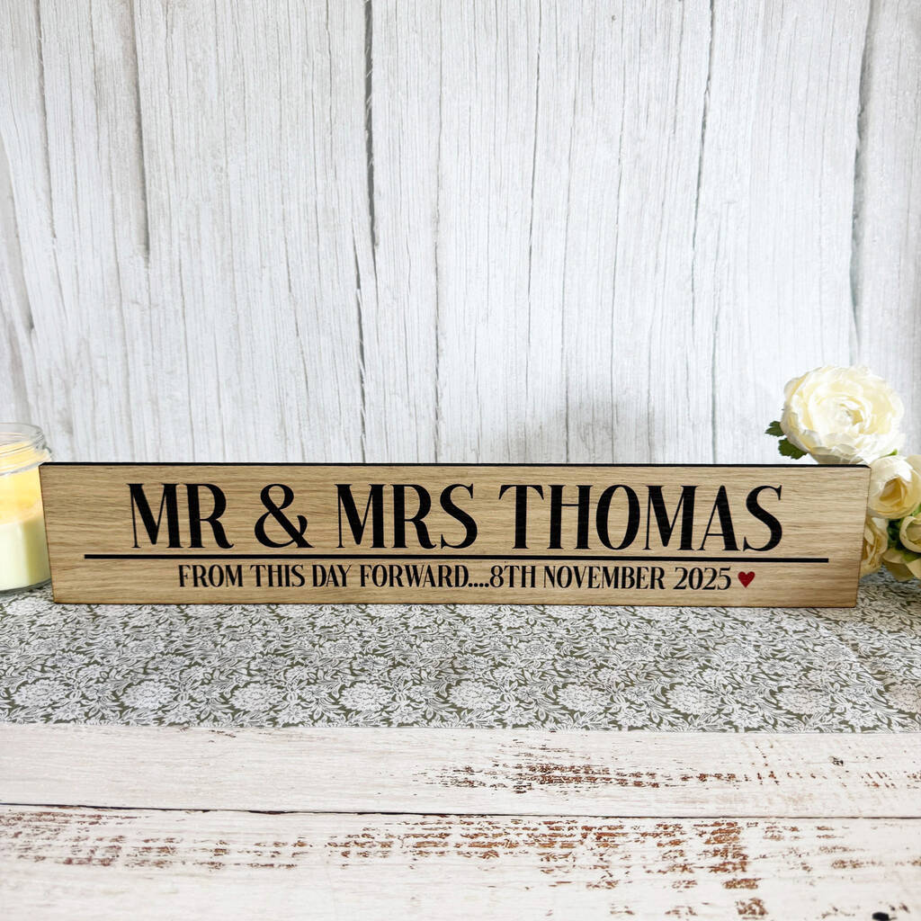 Personalised Oak Mr Mrs Wedding Sign With Names And Date