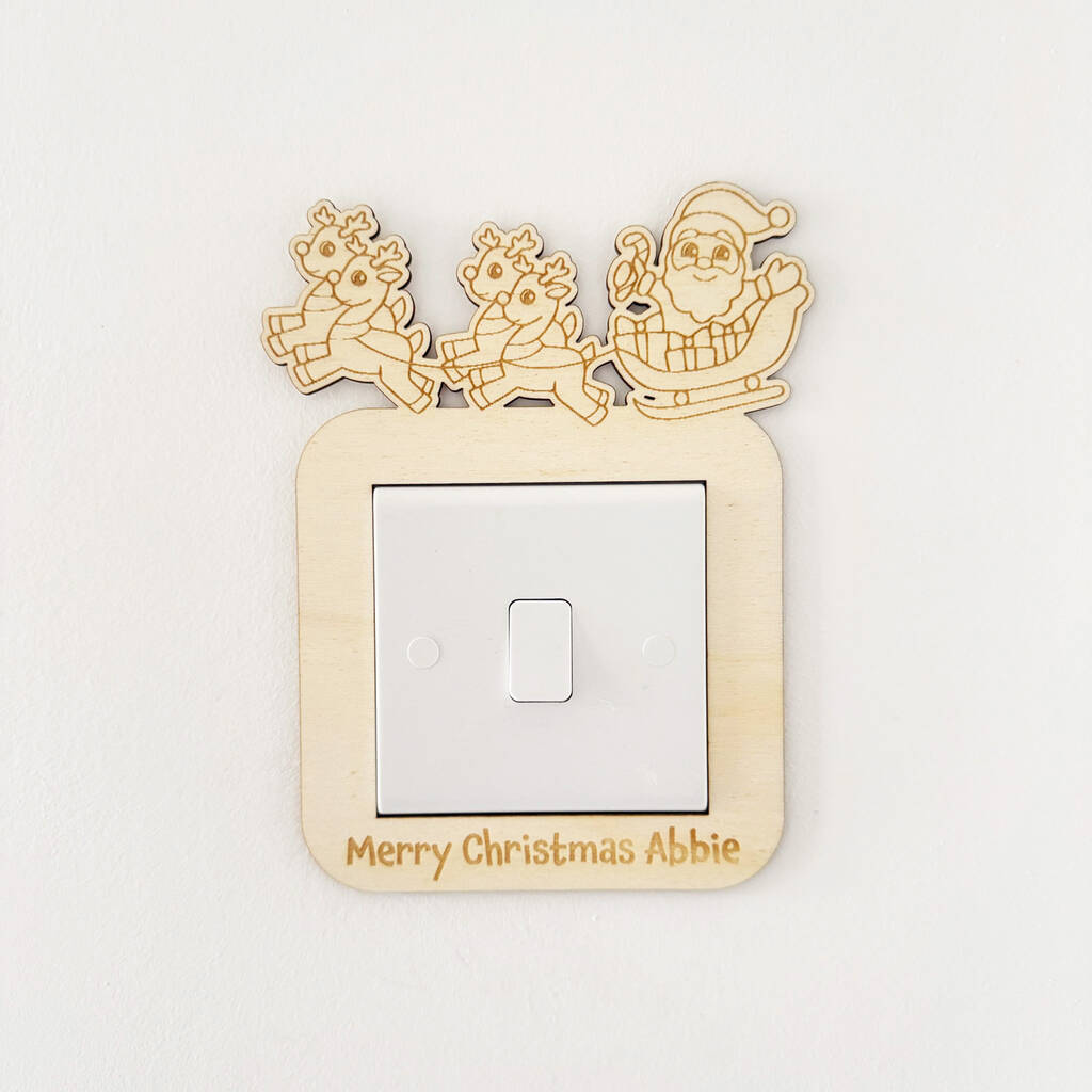 Personalised Sleigh Design Wooden Light Switch Surround Childrens Bedroom Decor