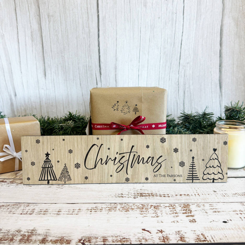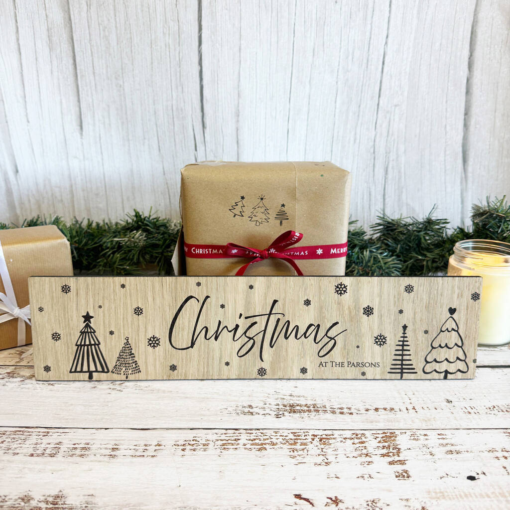 Personalised Small Oak Christmas Family Sign Decoration Gift, 1 of 7