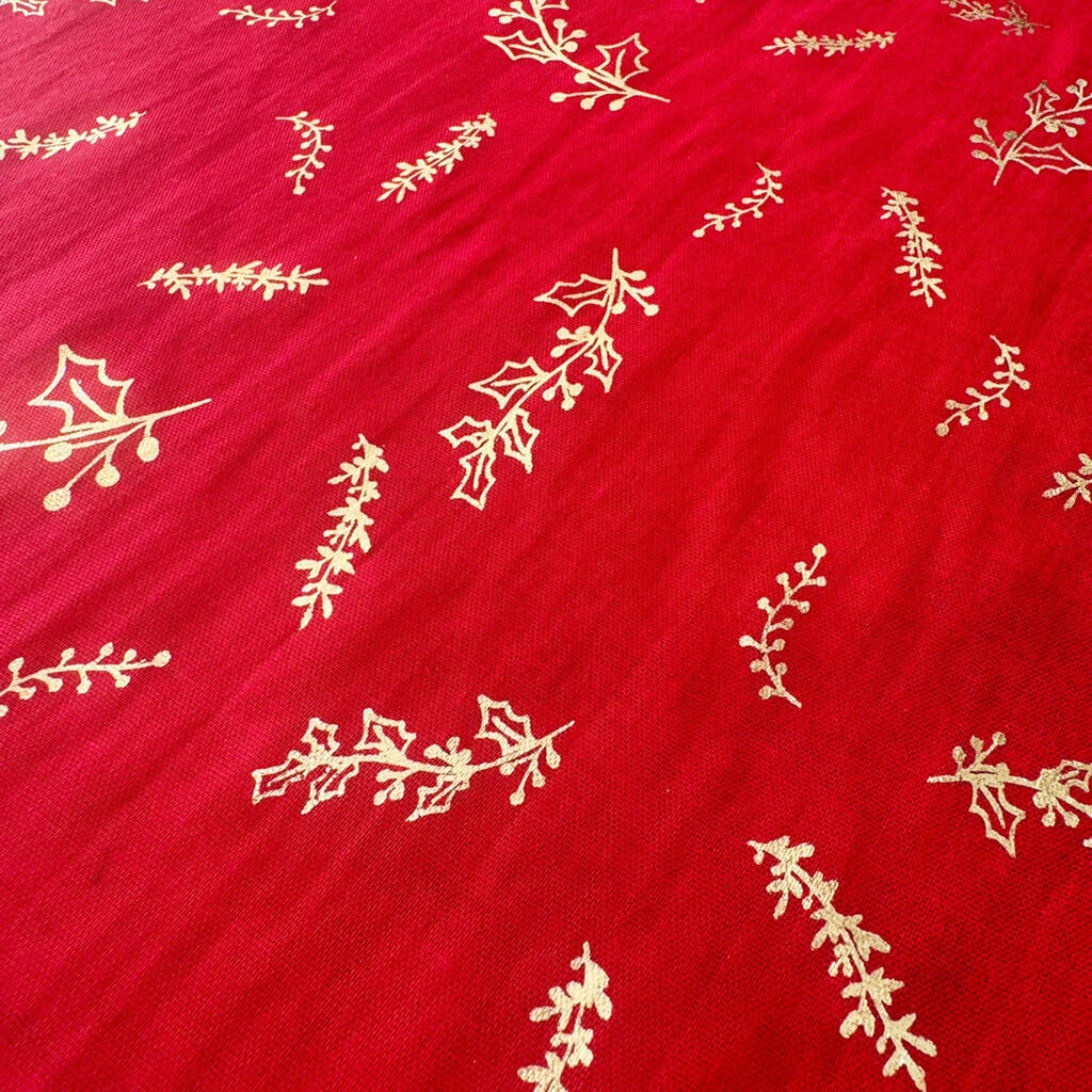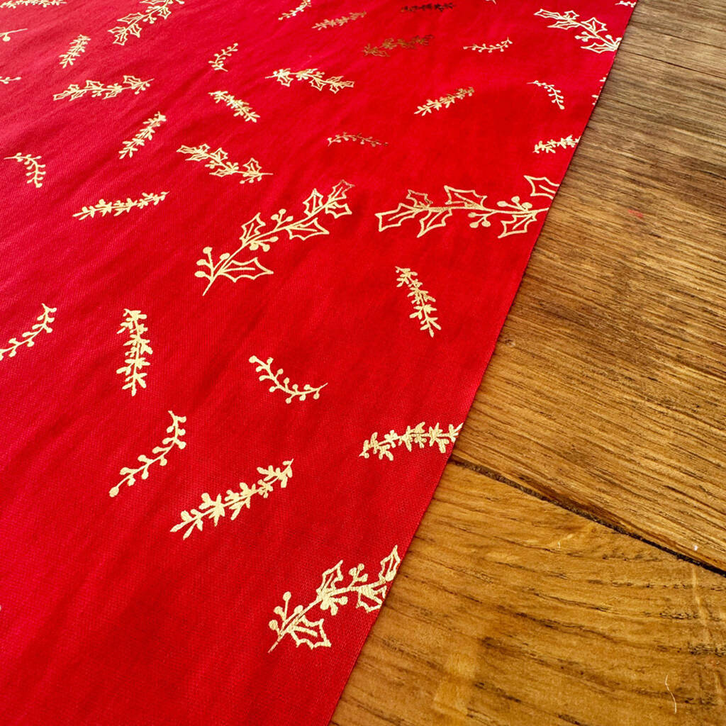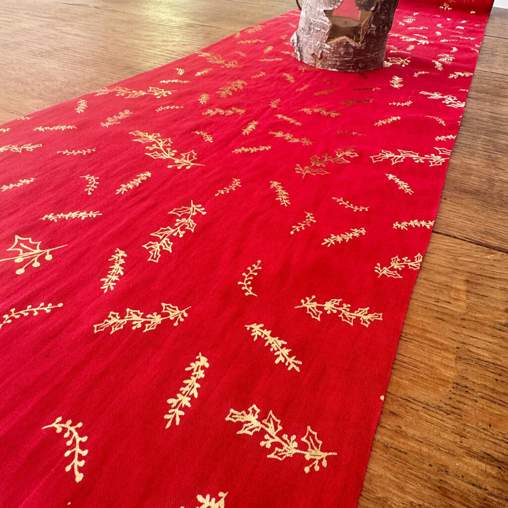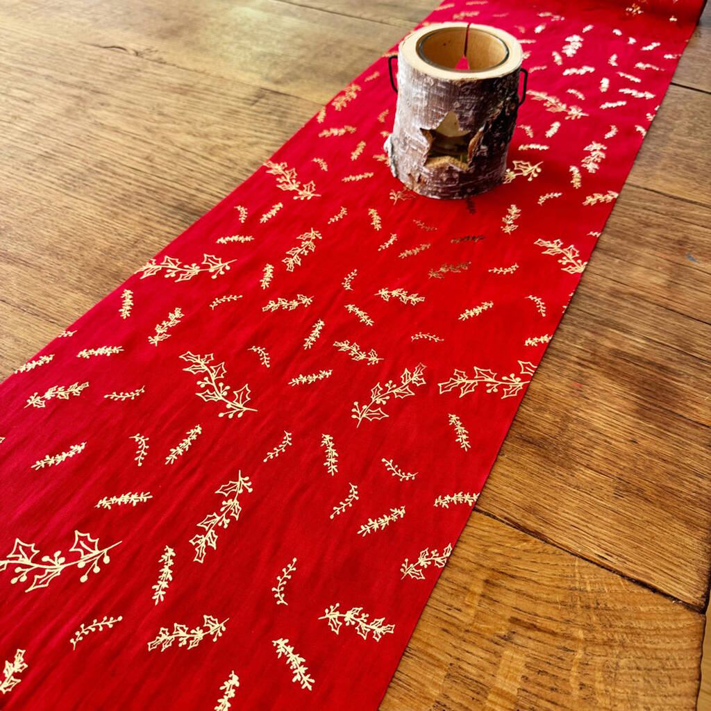 Red And Gold Chiffon Holly Leaves Christmas Table Runner 28cm X 3m
