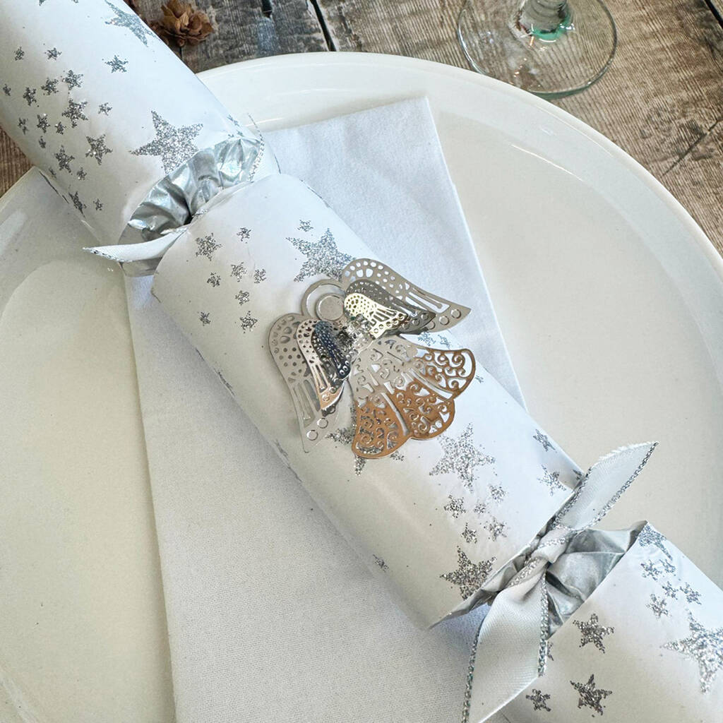 Silver Angel Jewel Luxury Christmas Crackers Set Of Six