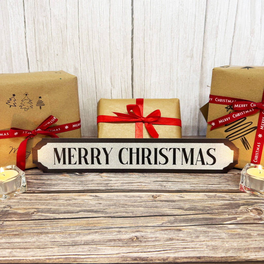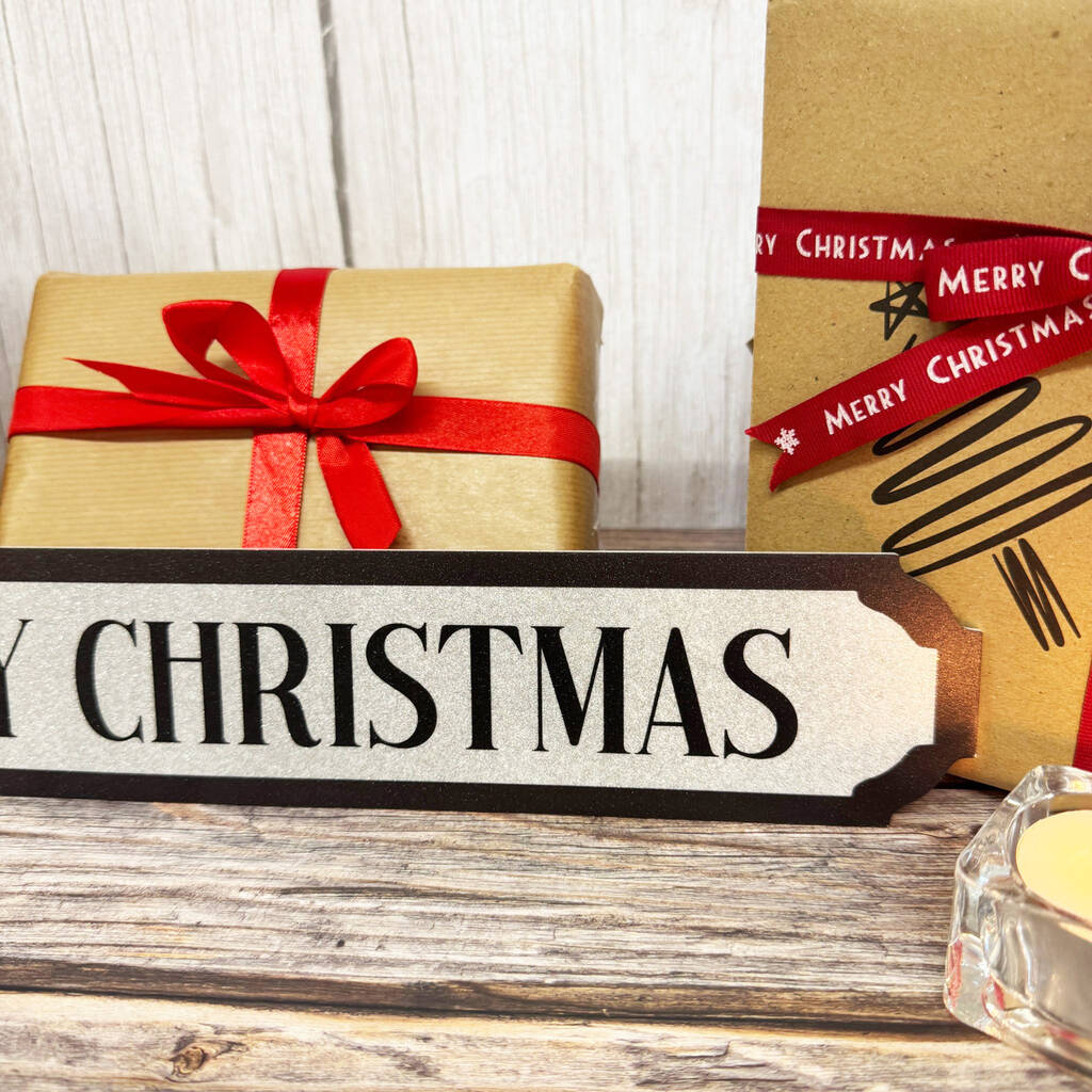 Silver Glitter Merry Christmas Road Sign Decor