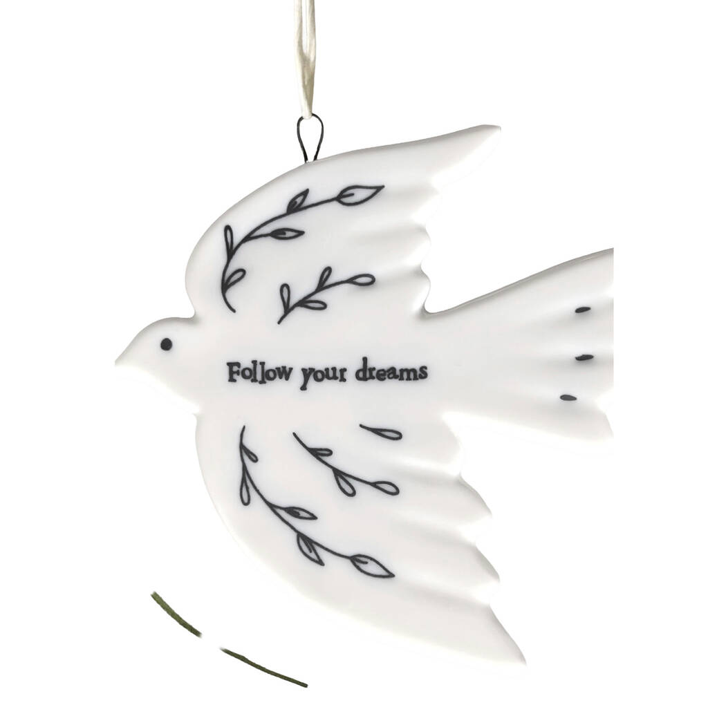 White Porcelain Dove Hanging Decoration Follow Your Dreams