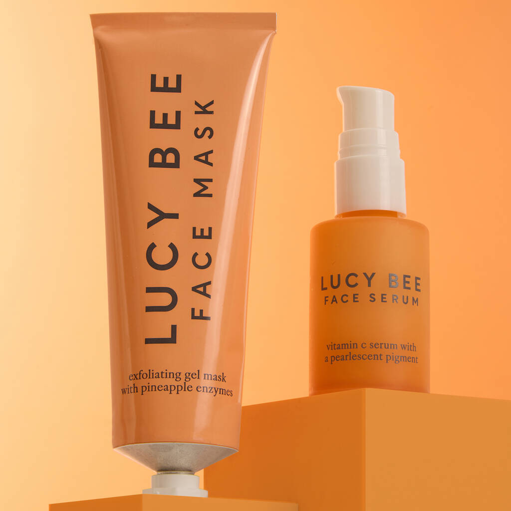 ORGANIC VITAMIN C FACE SERUM: Water (Aqua), Cocos Nucifera (Coconut) Fruit Water*, Citrus Aurantium Amara (Bitter Orange) Flower Water*, Vitis Vinifera (Grape) Seed Oil*, Pentylene Glycol, Sodium Lactate, Coconut Alkanes, Glyceryl Stearate SE, Glyceryl Stearate Citrate, Rosa Canina Fruit Oil*, Ascorbyl Glucoside, Rubus Chamaemorus Seed Oil, Benzyl Alcohol, Coco-Caprylate/Caprate, Triticum Vulgare (Wheat) Germ Oil, Acacia Senegal Gum, Xanthan Gum, Potassium Sorbate, Mica, Sodium Citrate, Aloe Barbadensis Leaf Juice Powder*, Dehydroacetic Acid, Silica, Sodium Phytate, Citric Acid, Carica Papaya (Papaya) Fruit Extract*, Cocos Nucifera (Coconut) Fruit Extract*, Ficus Carica (Fig) Fruit Extract*, Mangifera Indica (Mango) Fruit Extract*, Theobroma Cacao (Cocoa) Seed Extract*, Sodium Benzoate, Sodium Hydroxide, Tocopherol, Titanium Dioxide (CI 77891). *Organically grown ingredients. Of total: 35% organic, 98% natural origin. Free from: Palm oil (including derivatives of palm oil); Petroleum; Silicones; Alcohol; Formaldehyde; PEGs; Sulphates; Artificial dyes; Soy; Gluten; Parabens.