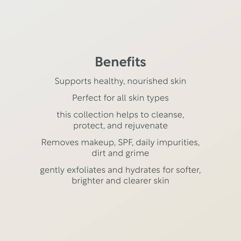 Perfect for all skin types, this skincare set helps to cleanse, protect, and rejuvenate your complexion from morning to night.