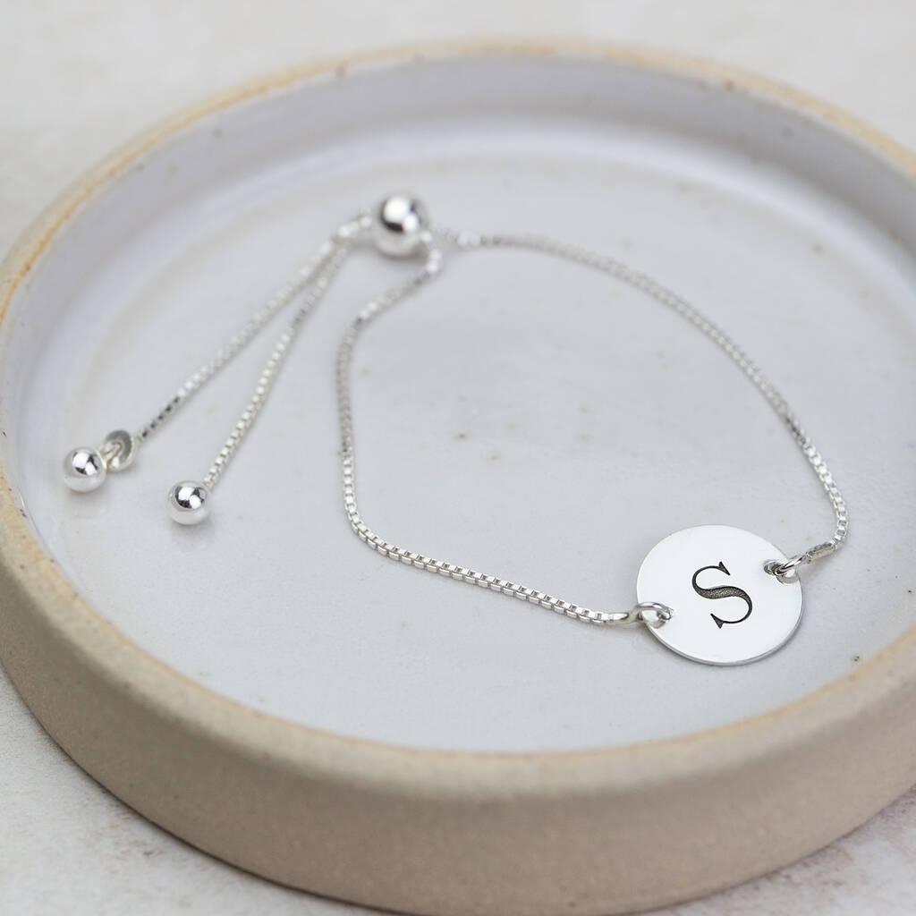Each sterling silver monogram bracelet is approximately 18cm chain with a 6mm bead that adjust the bracelet size.