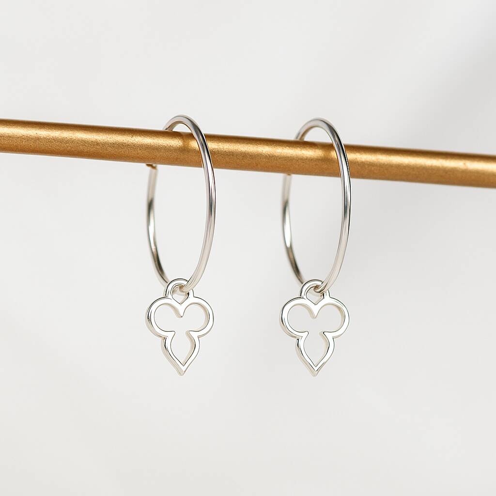 Sterling Silver Geo Flower Charm Hoops, 1 of 2