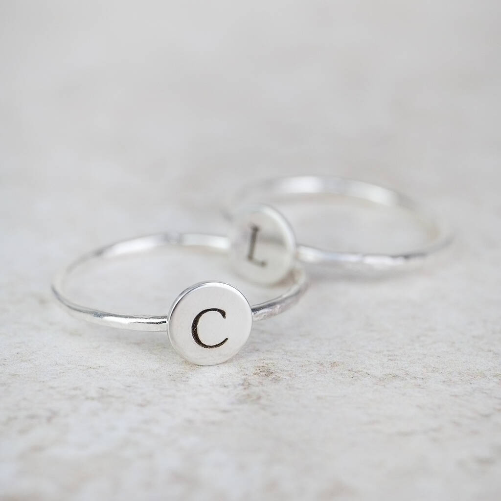 Handmade sterling silver personalised initial charm ring.