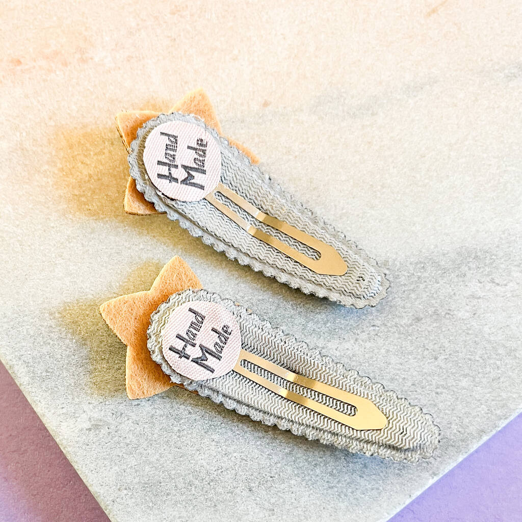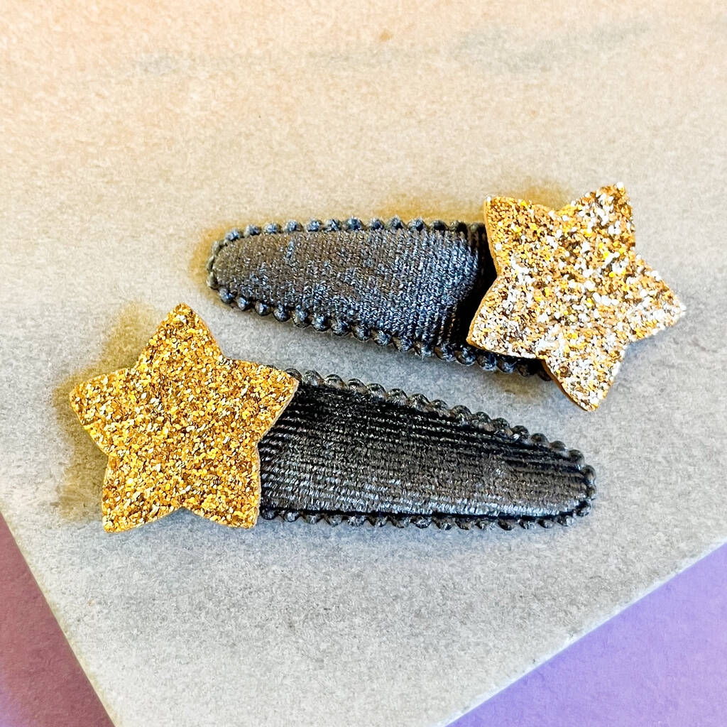 Grey Velvet Gold Glitter Star Hair Clip Set, 1 of 2