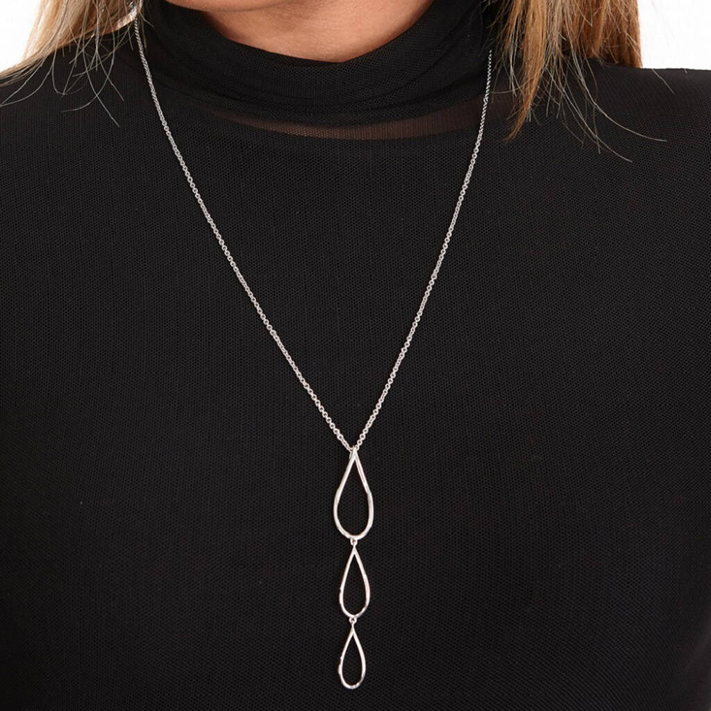 This graceful necklace features three open petal shapes cascading down the front, making it a versatile piece for both everyday wear and special occasions.