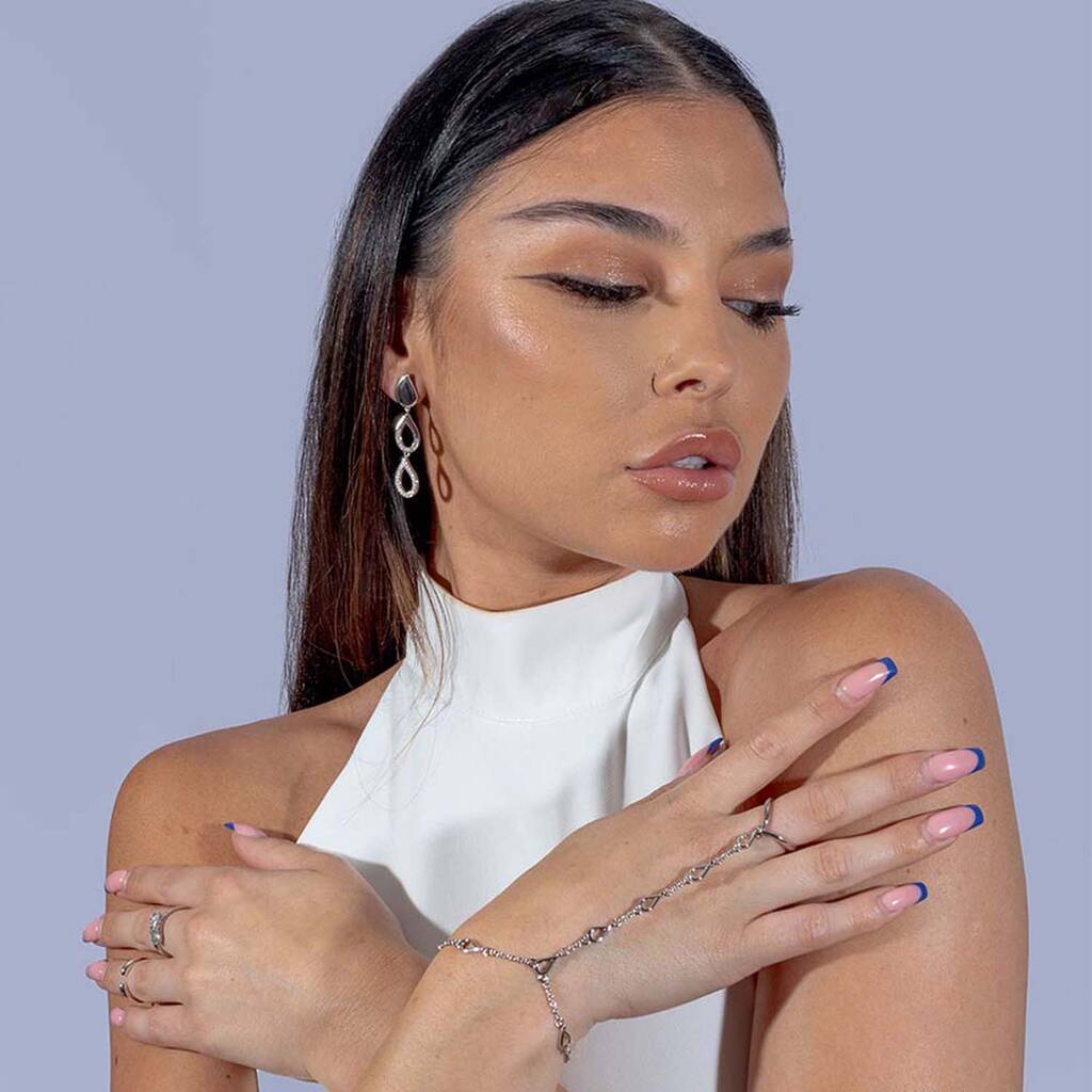 From the Melting Diamond Collection, these exquisite earrings combine sculptural design with fluid elegance. Crafted from 925 sterling silver with a rhodium overlay, they feature open drops set with sparkling white diamonds that shimmer beautifully as they move. The butterfly stud fastening ensures secure, comfortable wear, making them perfect for any occasion.