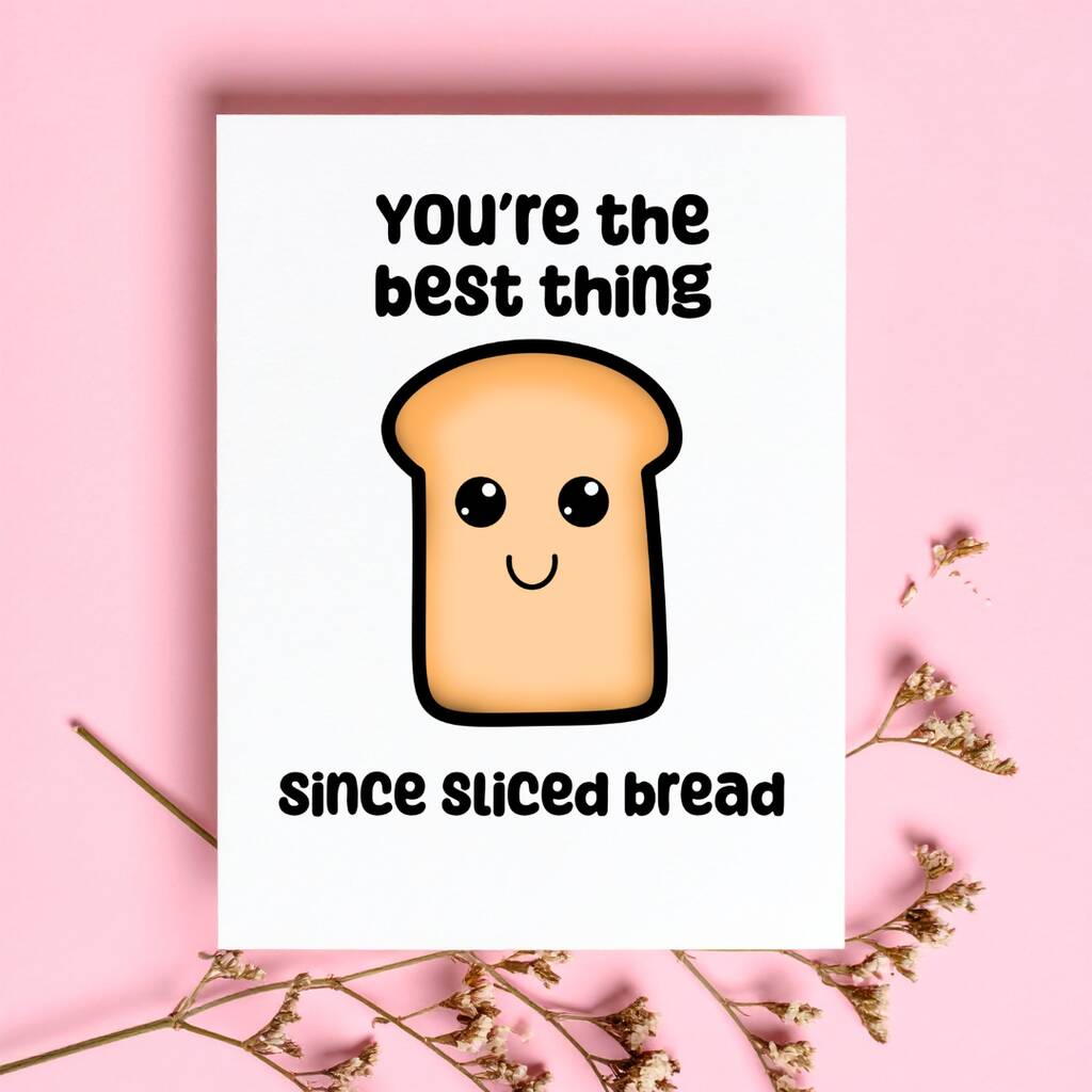Funny Valentine’s Day A6 card “You’re The Best Thing Since Sliced Bread” printed on premium 300gsm card