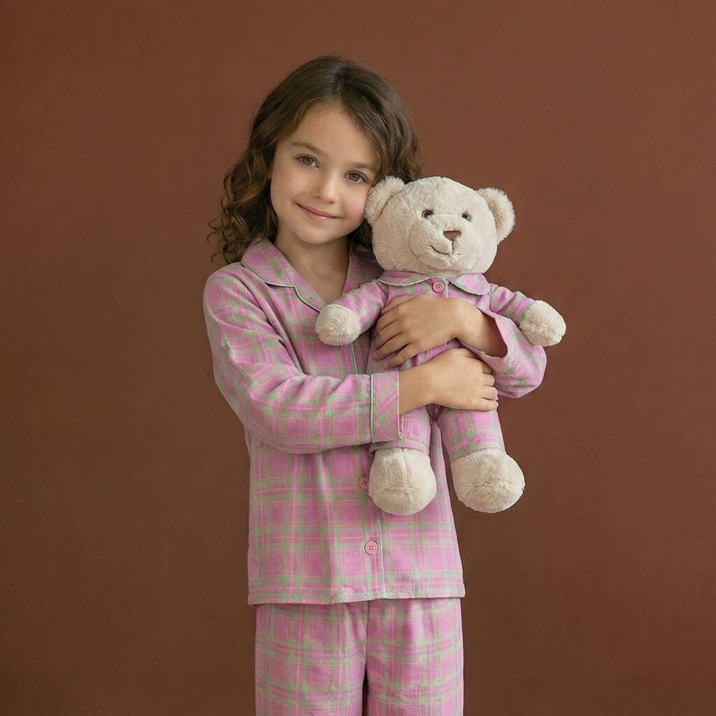 Perla Pyjama Set With Matching Teddy Bear Pink Set