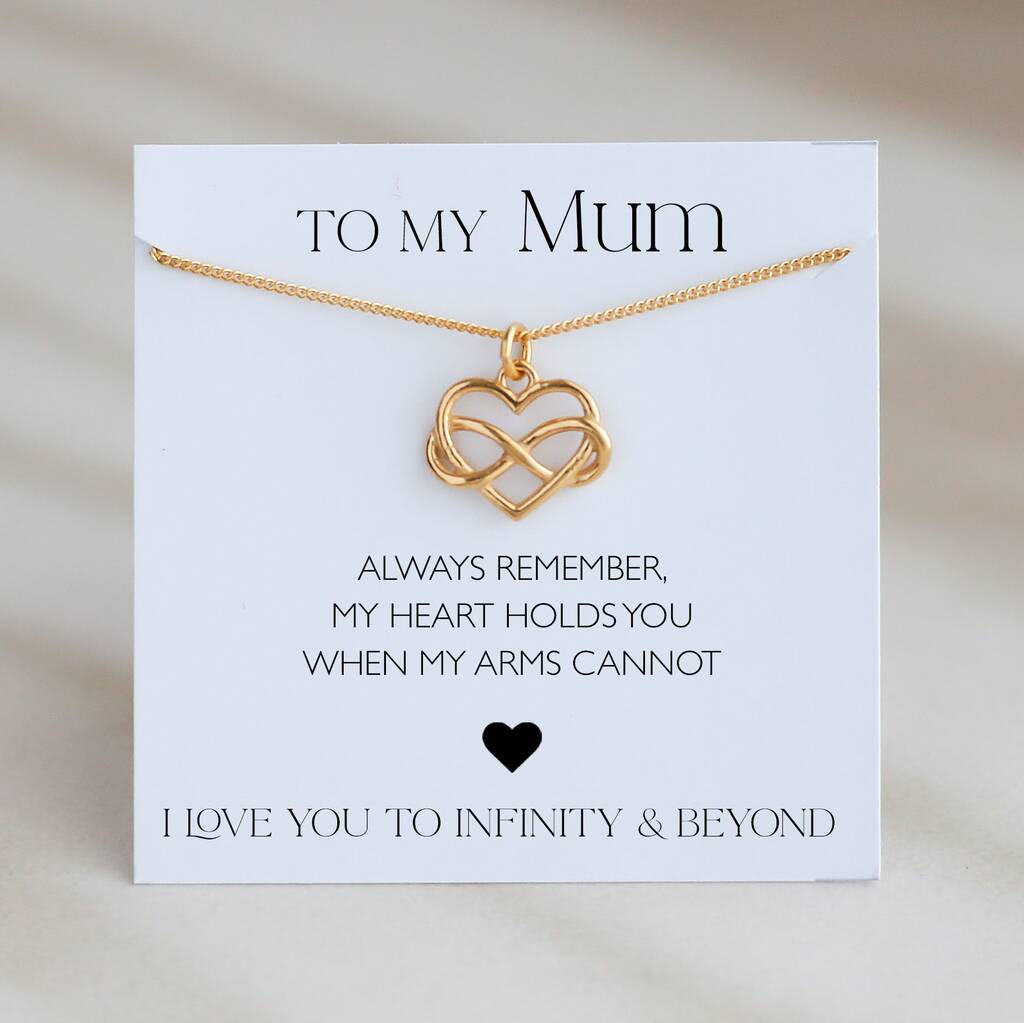 A heartfelt necklace for Mum with a heart and infinity charm – a beautiful reminder of your love, even when you're apart.