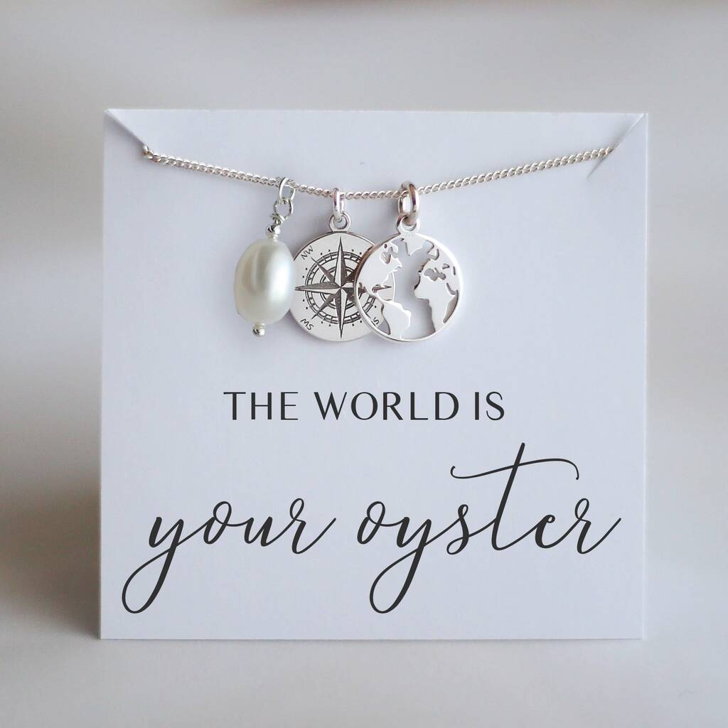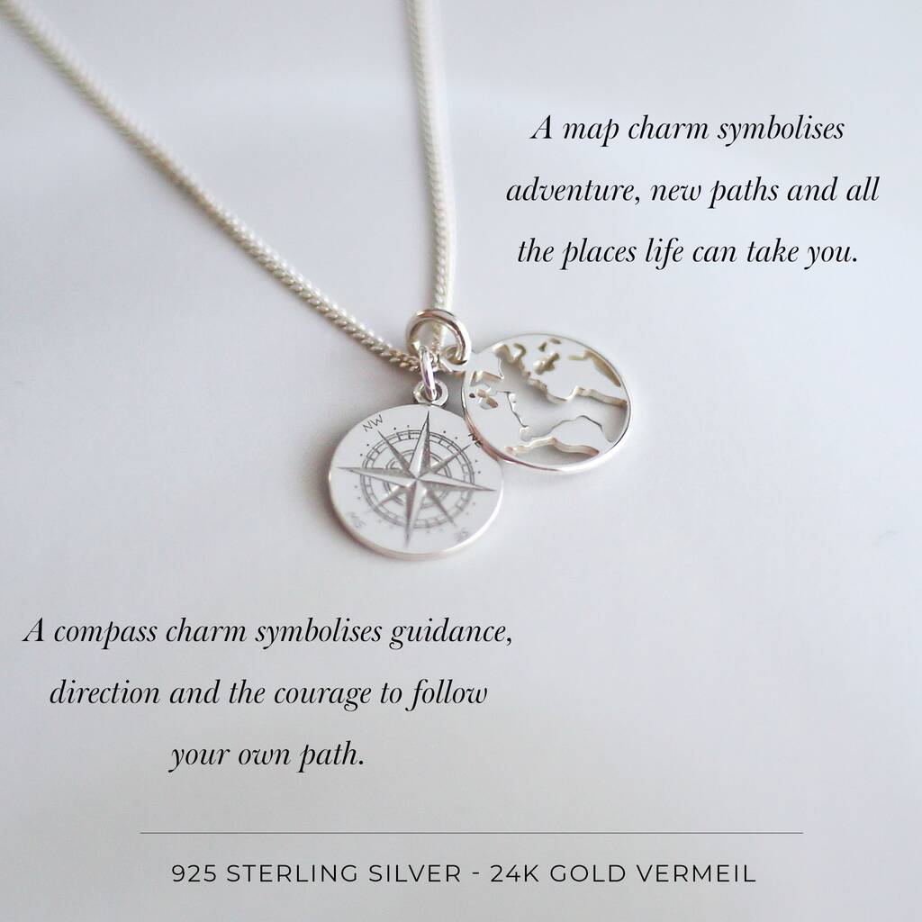 Inspirational Gift For Christmas, Compass And Map Necklace