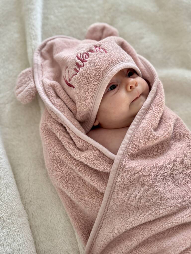 Personalised Hooded Towel In Dusky Pink