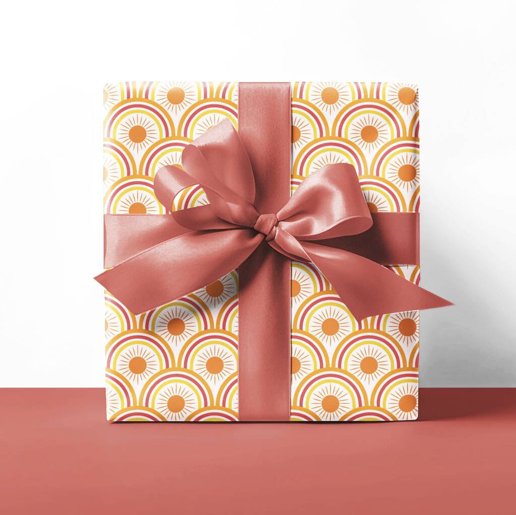 Featuring Sunrises, this wrapping paper is designed to delight, vibrant oranges and yellows, it’s perfect for birthdays, or any celebration that calls for a special touch.