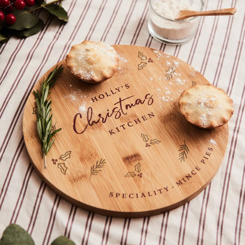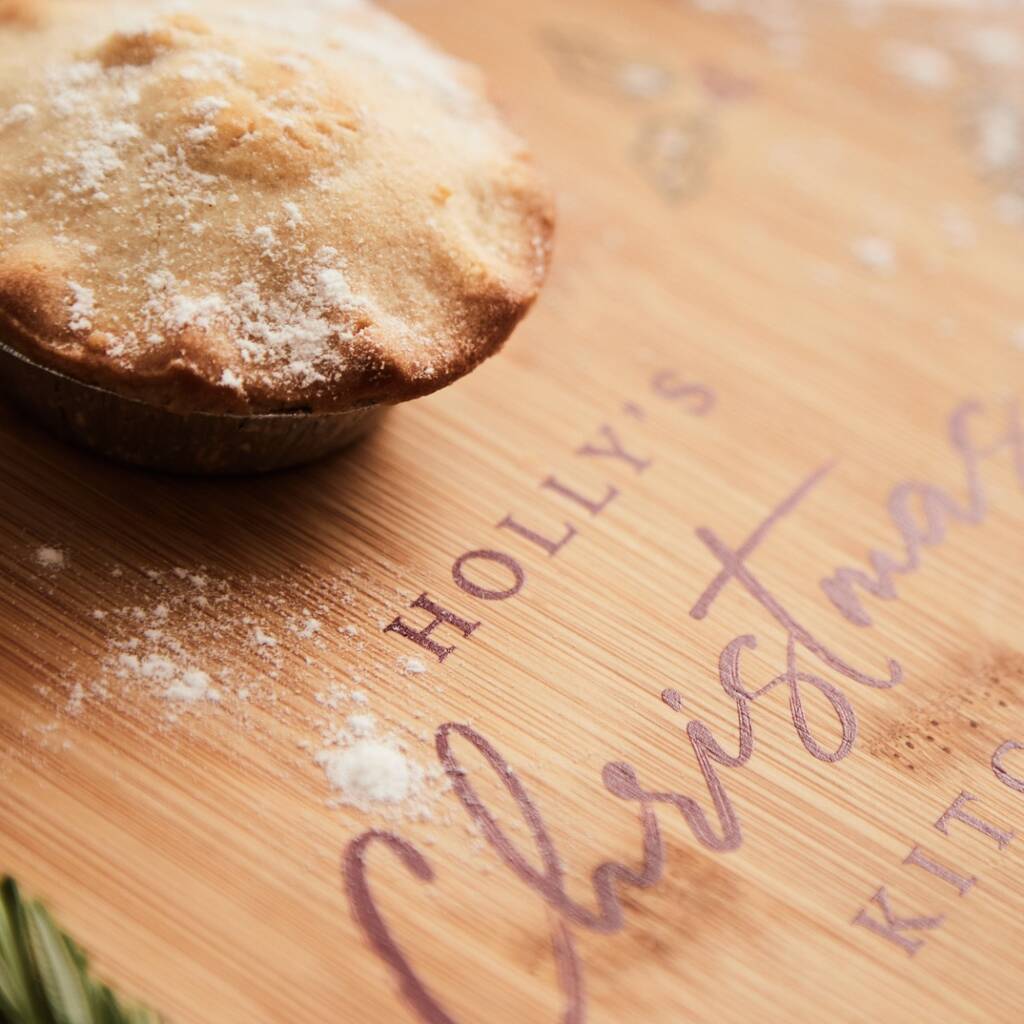 Our Christmas kitchen platter is the best treat for budding bakers and top-notch chefs! From snuggling on the sofa with a slice of yule log to your seasonal soirees with picky bits on the side – this board will display it all perfectly. We added holly and fern etches as well as ‘Christmas Kitchen’ wording to the centre. All ready and waiting for you to personalise it with their name too.