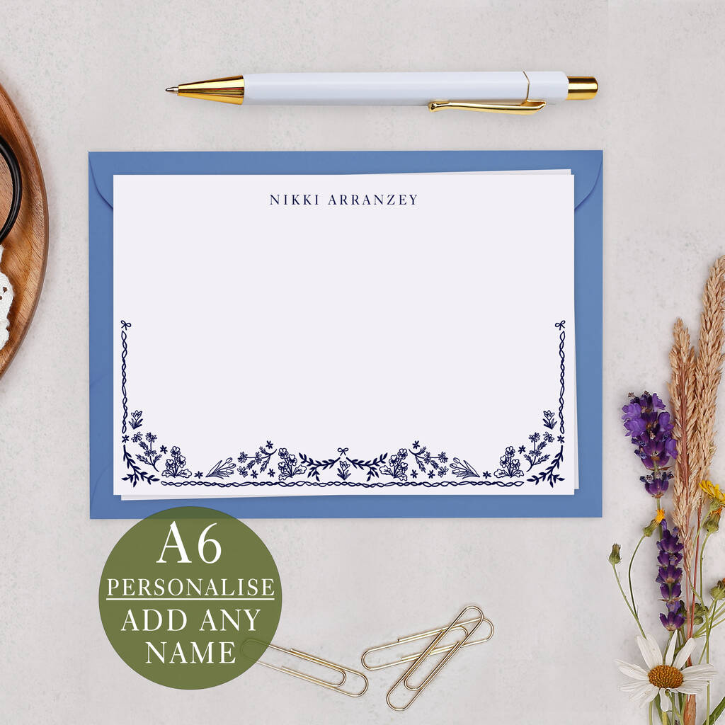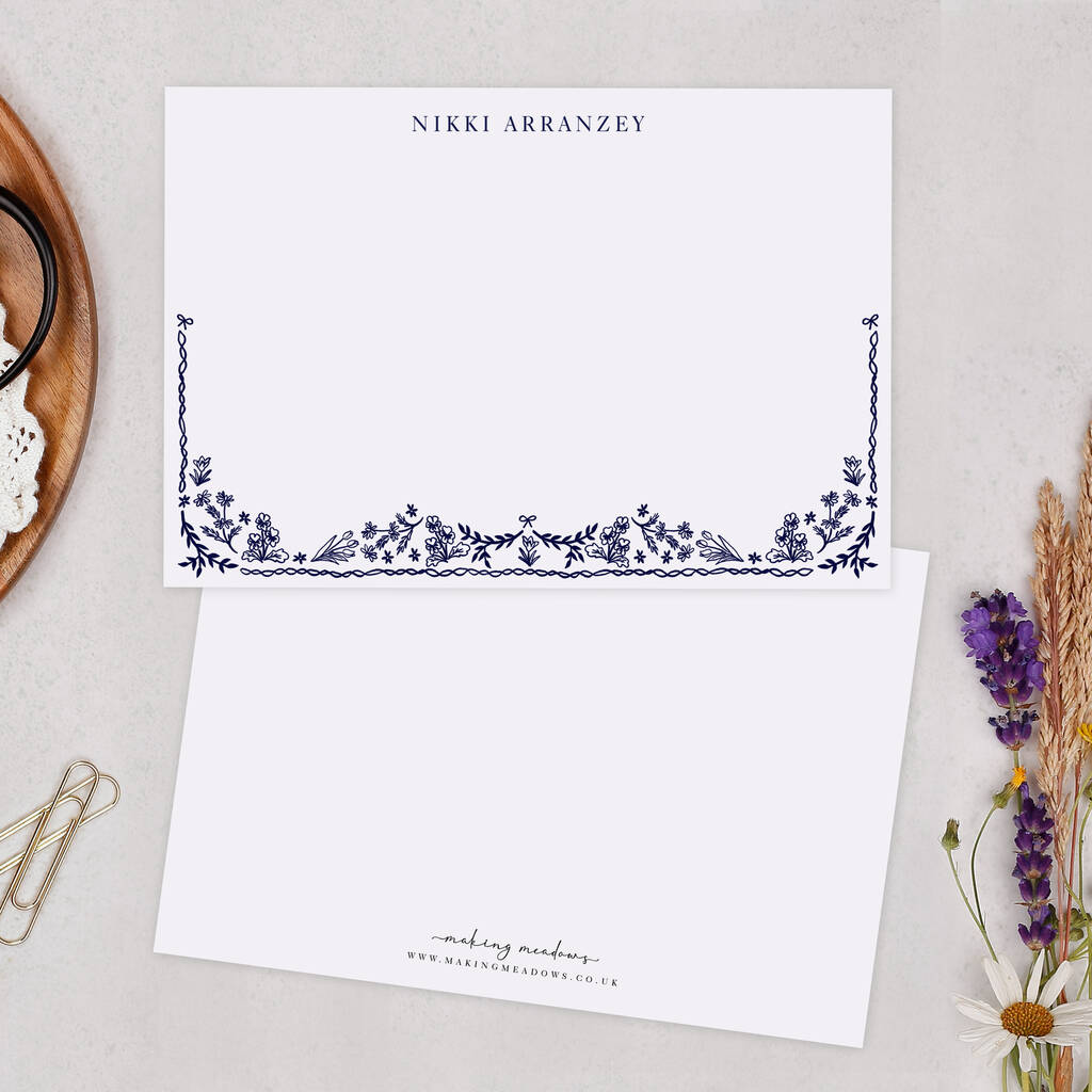 Personalised Navy Blue Floral Note Cards A6 Notecard Set, 1 of 5