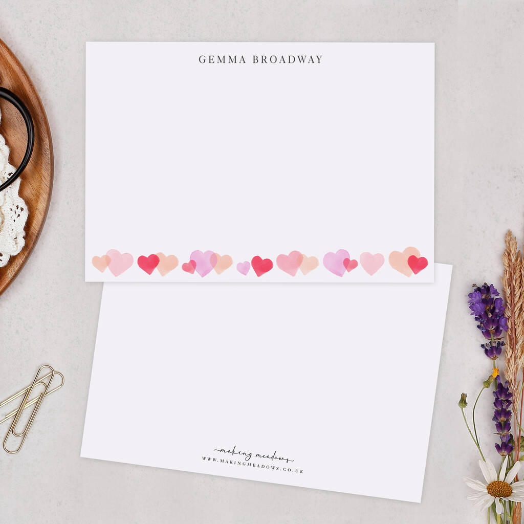 Personalised Pink Heart Note Cards A6 Notecard Set