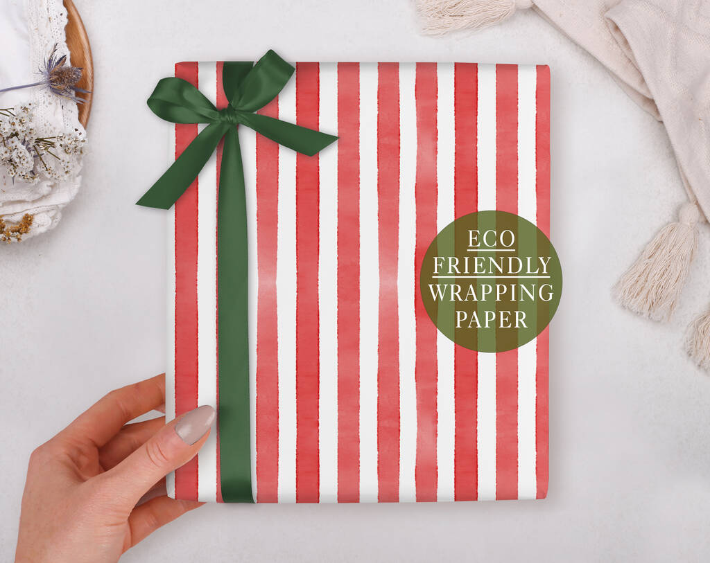 Valentine Wrapping Paper With Red Stripe Pattern, Three Sheet Pack, 1 of 3