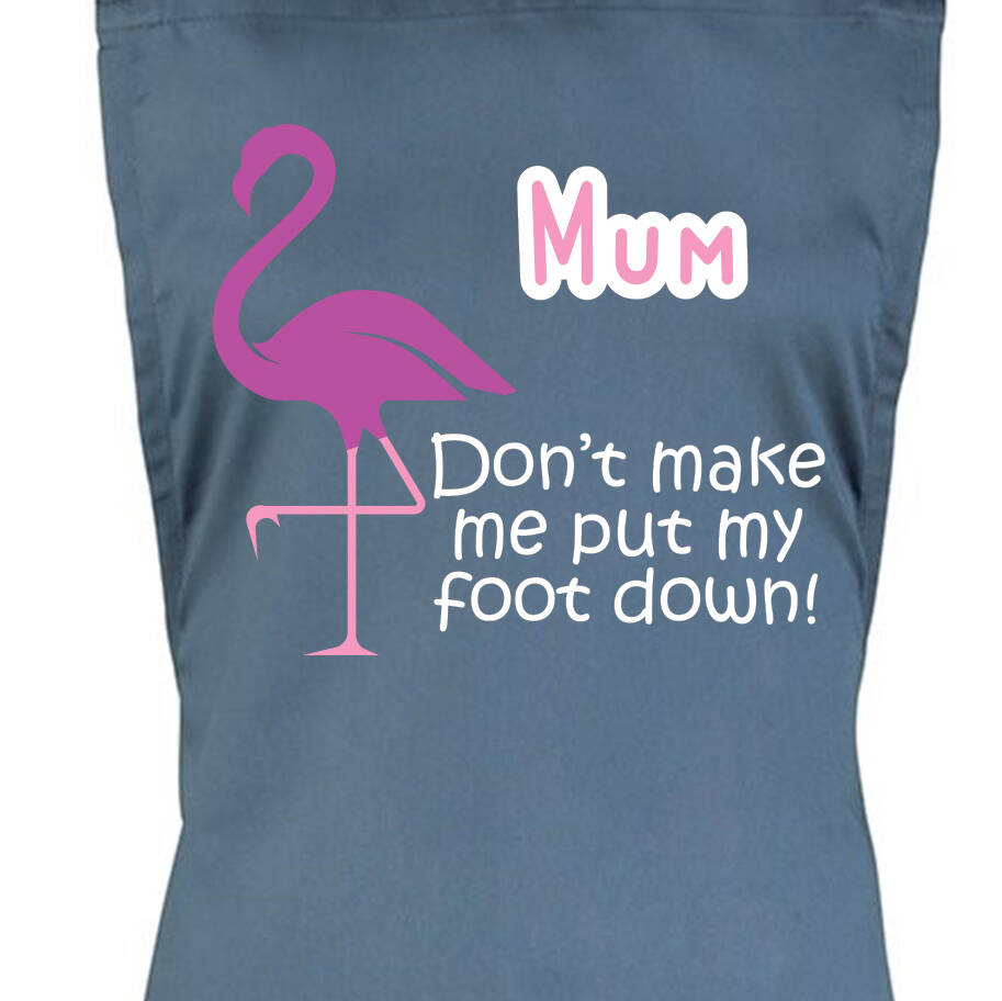 Let someone know you love their cooking / baking / BBQ's with this stylish and useful personalised apron. The perfect personalised Mothers day gift, it is made to order in house within a few days and can have any wording of your choice, for example 'Number 1 Cook' or for Mothers Day 'The Mother of all Cakes' etc. Plus it can have their year of birth in the swoosh under the text. The flamingo puffs up to give you a fethered feel just like a real bird.