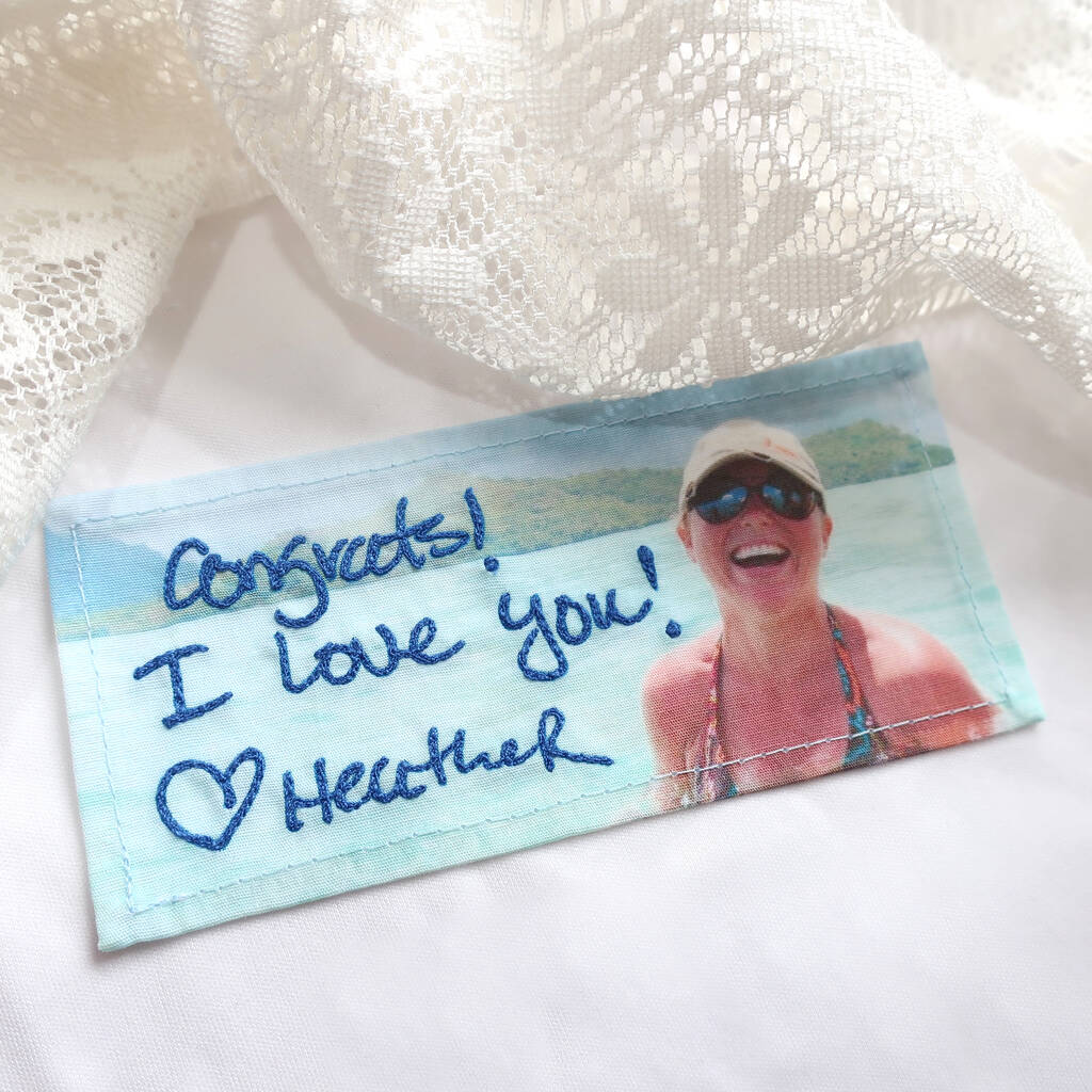 Custom Photo And Embroiderd Handwriting Wedding Dress Label