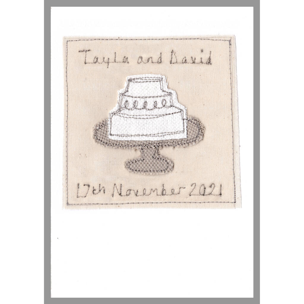 On the BIG HEART, CHURCH, CAKE and CASTLE cards, your chosen words are embroidered at the top and bottom of the card.