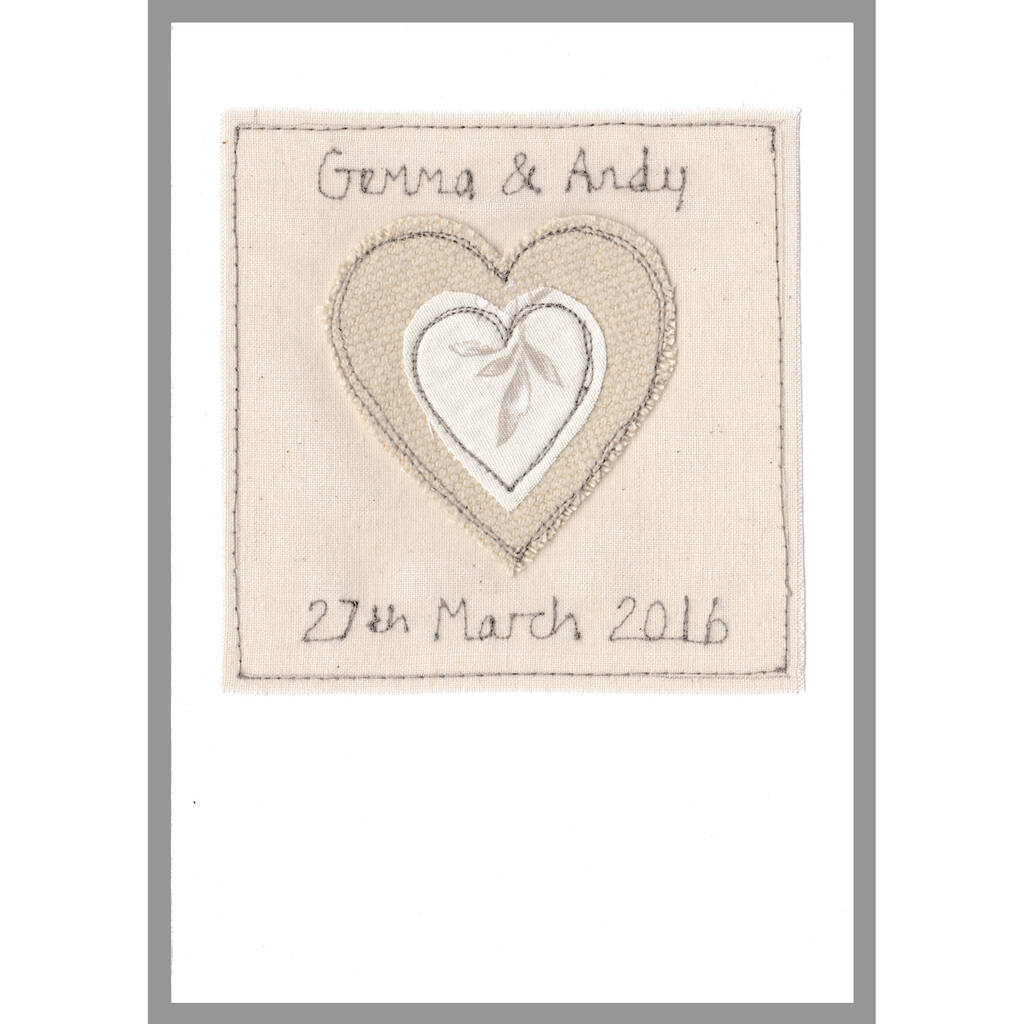 A beautiful personalised wedding card, embroidered by milly and pip. Perfect to celebrate a wedding, wedding anniversary, engagement or valentine's day too!