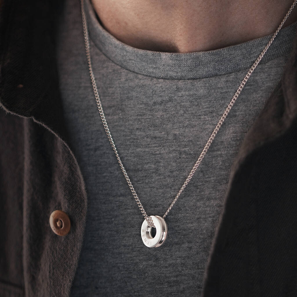 Keep loved ones close with the men's engraved family circle necklace, add multiple pendants to carry names, dates or words that mean the most.