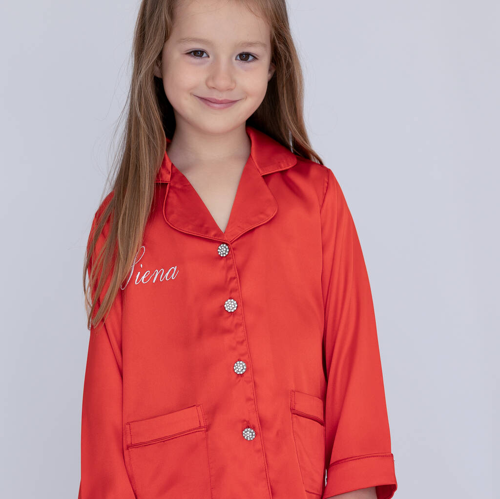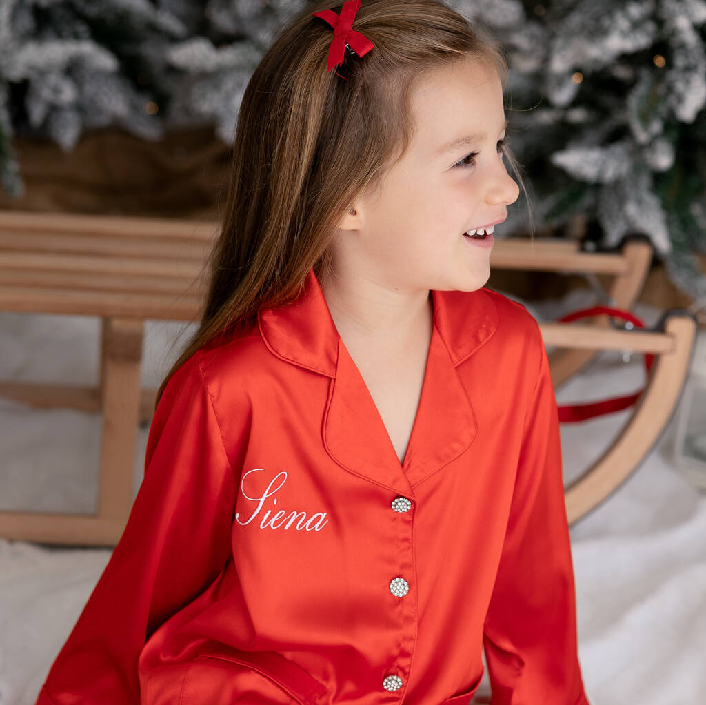 Matching Personalised Mum And Daughter Red Christmas Silky Pyjama Set