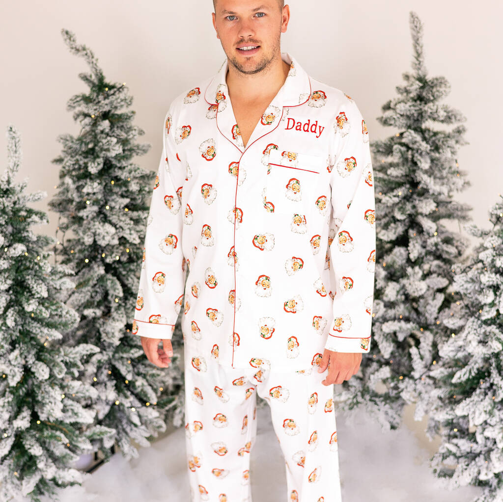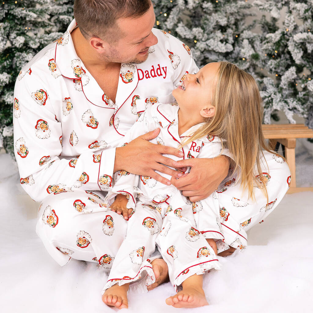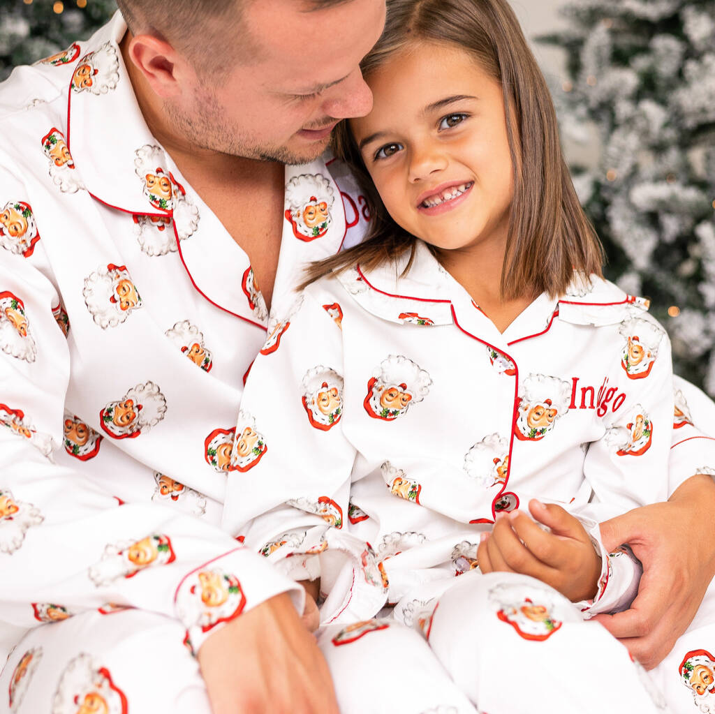 Personalised Matching Christmas Santa Print Pyjamas For Dad And Child