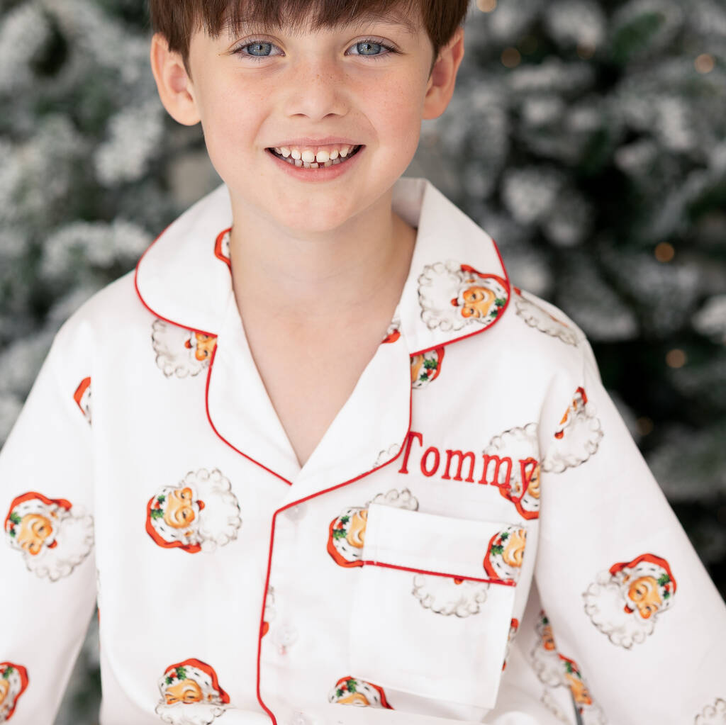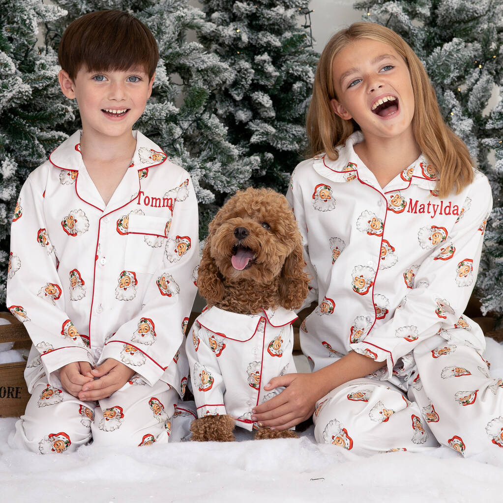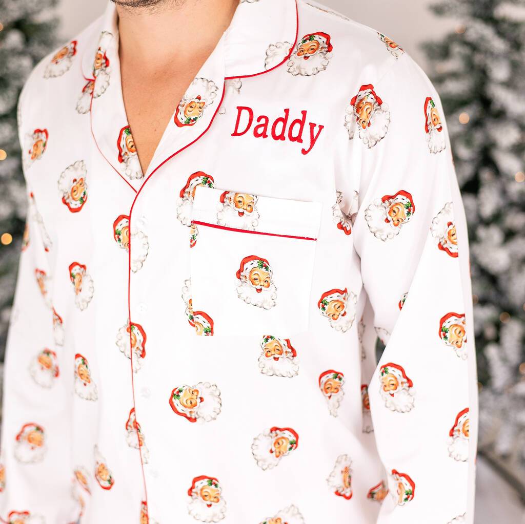 Personalised Matching Christmas Santa Print Pyjamas For Dad And Child