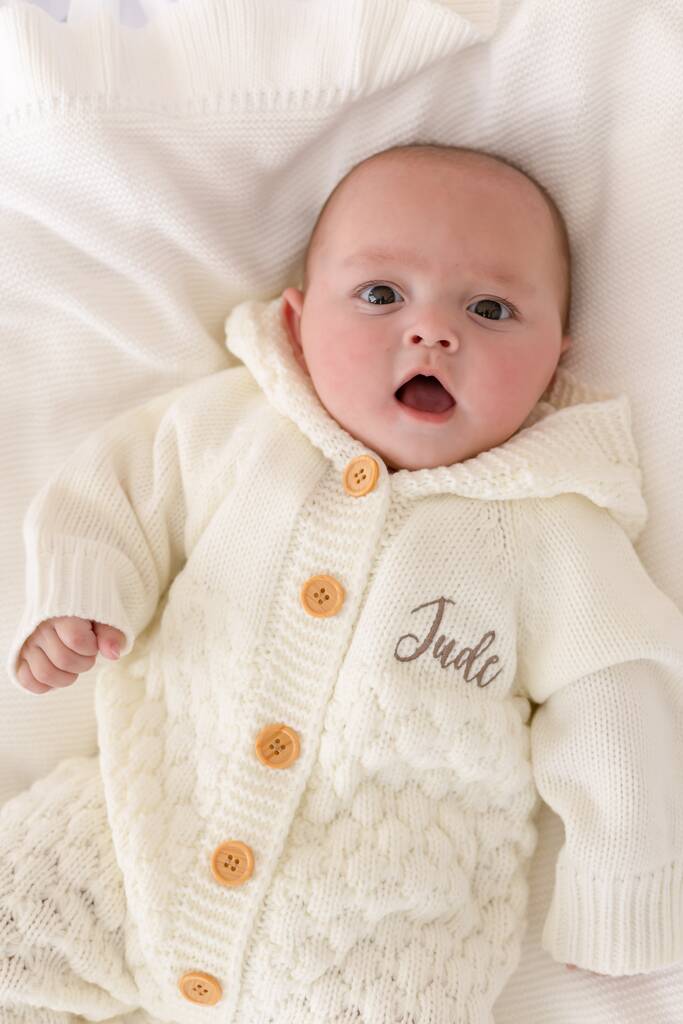 Cream Chunky Knit Personalised Embroidered Long Sleeve Pramsuit With Hood