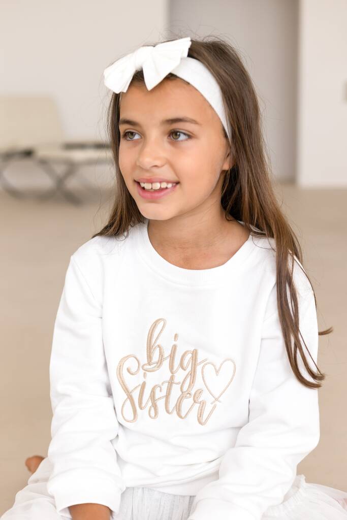 Gorgeous embroidered sweatshirts for siblings - brother and sister available. Perfect new baby gift.
