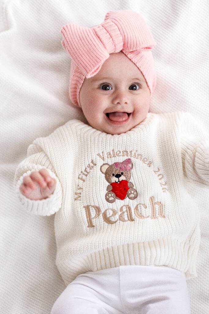 My First Valentines Bear Embroidered Knitted Jumper