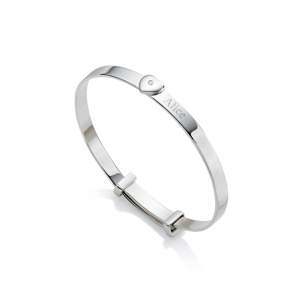 Personalised 925 Sterling Silver Diamond Bangle Baby Love Christening | Baptism | 1st Birthday | Engraved Jewellery